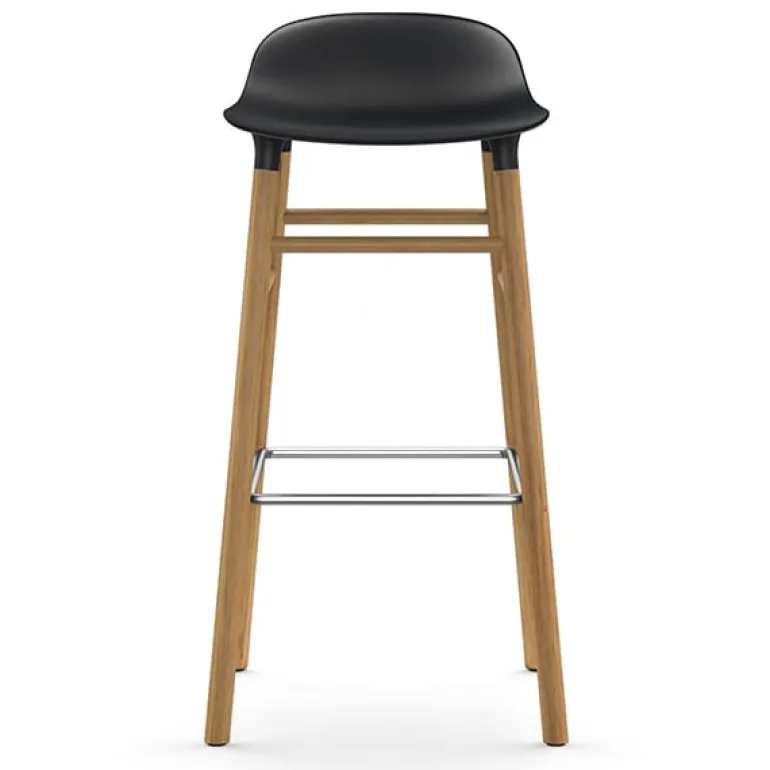 Barstolen Form från Normann Copenhagen har samma stilrena linjer och innovativa design som matstolarna i samma kollektion. De runda benen är fästa vid sitsen med ett koppsystem, vilket ger barstolen dess unika och moderna utseende. Den rundade plastsitsen är enkel att hålla ren, och fotstödet ger extra komfort. Barstolen Form är ett utmärkt komplement till alla kök eller barområden.