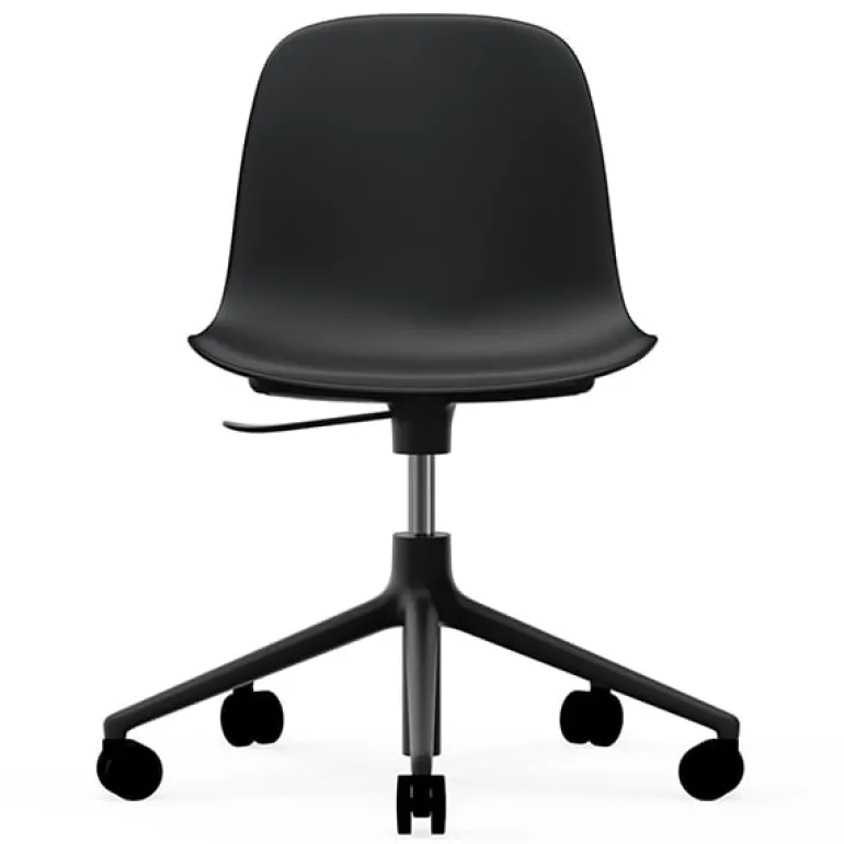 Normann Copenhagens snurrstol Form ingår i Forms stolkollektion, som designats av Simon Legald. Snurrfunktionen, den justerbara höjden och hjulen gör Form Swivel 5W Gaslift till en bekväm och anpassningsbar kontorsstol, som passar fint ihop med många olika typer av bord på kontor, i konferensrum och i hemmet. Stolen Form Swivel består av en aluminiumbas och en sits i polypropen, och finns i tre eleganta färger.