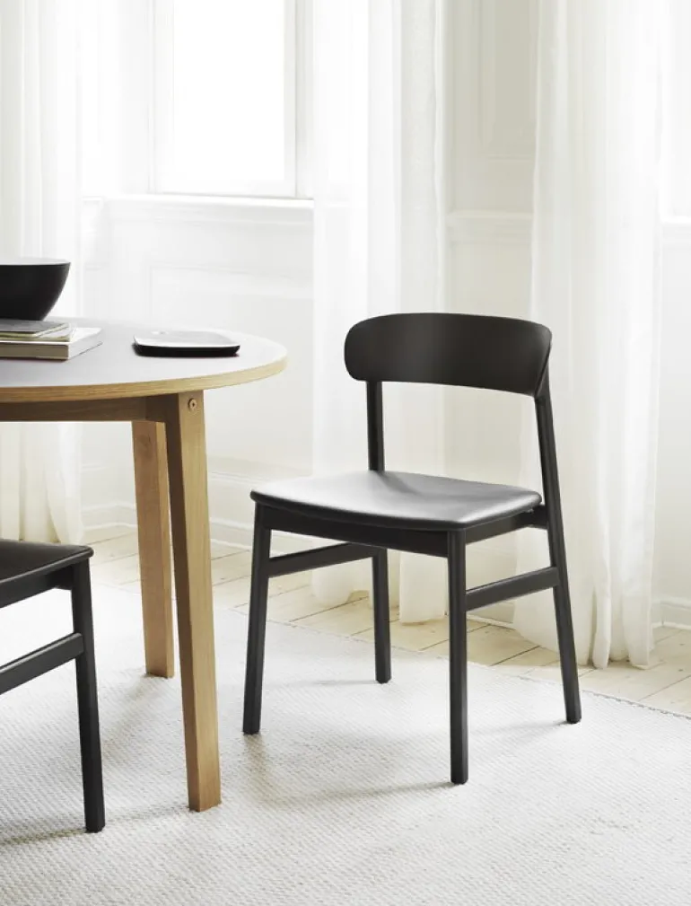 Herit stol, från Normann Copenhagen, är en stark men nätt ekstol med lätt bågformat ryggstöd i plast och läderklädd sits. Herit är en förkortning av det engelska ordet för ”arv” (heritage), och reflekterar formgivaren Simon Legalds kärlek till klassisk, dansk möbeldesign – dess tidlösa uttryck är influerat av många olika tidsepoker. De moderna produktionsmetoderna och materialsammansättningarna gör även Herit till en stol för framtiden och ger nytt liv åt skandinavisk design. Tack vare sin mångsidighet kan Herit enkelt matchas med gamla rustika bord, karakteristiska designklassiker, men också moderna mat- och restaurangbord.