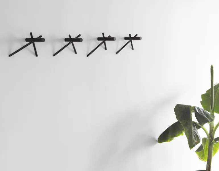 Sticks-krokarna har inspirerats av arkitekturen, och för in lekfullhet i interiören. Krokarna gör det möjligt att hänga upp föremål på flera olika sätt. Kroken är minimalistisk men ändå överraskande. Sticks-krokarna har formgivits av Benoît Deneufbourg. Säljs i par.