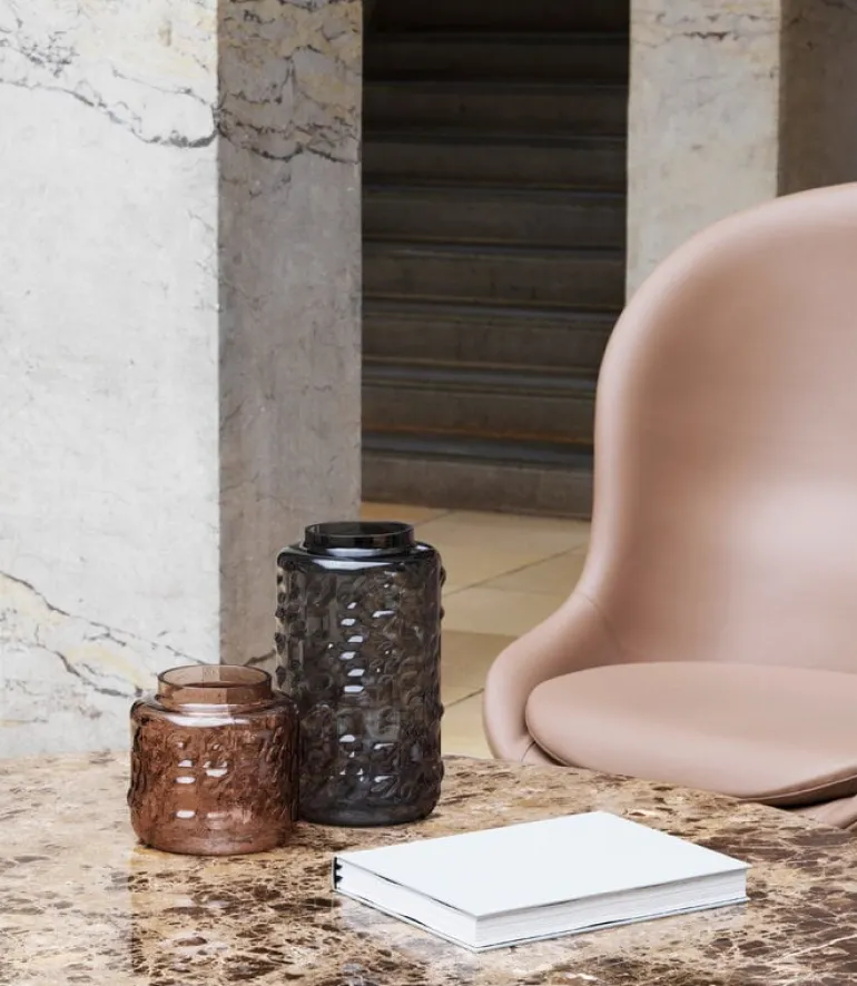 Normann Copenhagens Tombola-vas har fått sitt namn efter en typ av brädspel eller lotteri där vinsten helt och hållet baseras på slumpen. Den distinkta ytestrukturen på vasen, designad av Mendel Heit, skapas på liknande sätt genom att placera abstrakta former i en slumpmässig ordning, vilket resulterar i en yta som vackert leker med ljus och skugga.