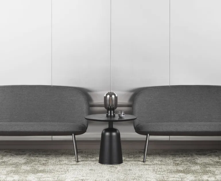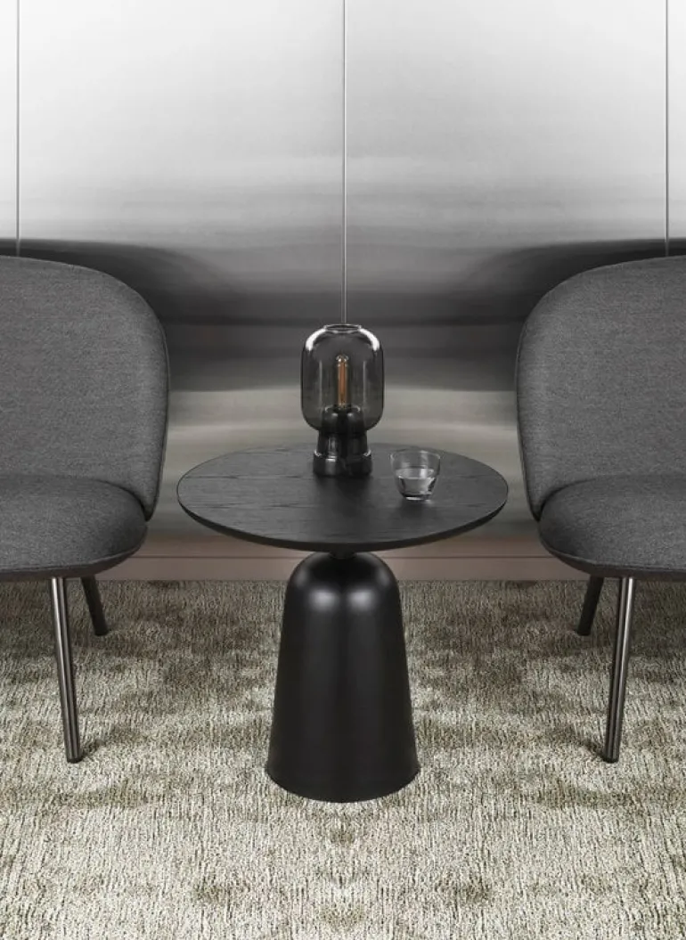 Normann Copenhagens Turn är ett attraktivt och mångfunktionellt sidobord med design av Simon Legald. Namnet Turn kommer från den snurrbara strukturen: du kan genom att vrida på bordsskivan justera dess höjd mellan 41,5 cm och 66,5 cm. Den lägre höjden passar bra när Turn används som soffbord eller sängbord, medan den högre höjden gör bordet till ett utmärkt sidobord i vilket rum som helst. Den klockformade basen är gjord av stål och bordsskivan är i askfaner. Den monokroma beläggningen ger bordet en fräsch och enhetlig look.