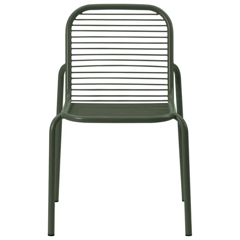 Vig-kollektionen, som har formgivits av Simon Legald, erbjuder ett brett spektrum av utomhusmöbler med allt från utestolar och utebänkar till trädgårdsbord – du kan enkelt förvandla din trädgård till en inbjudande och vacker grön oas. Genom sitt eleganta utförande och tåliga material är Vig som gjord för att användas länge: stålytan har pulverlackerats två gånger och är mycket motståndskraftig mot skiftande väderförhållanden, och stolen klarar därför att stå emot både gassande sol och ösregn.