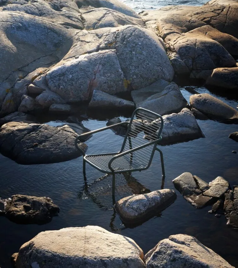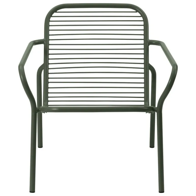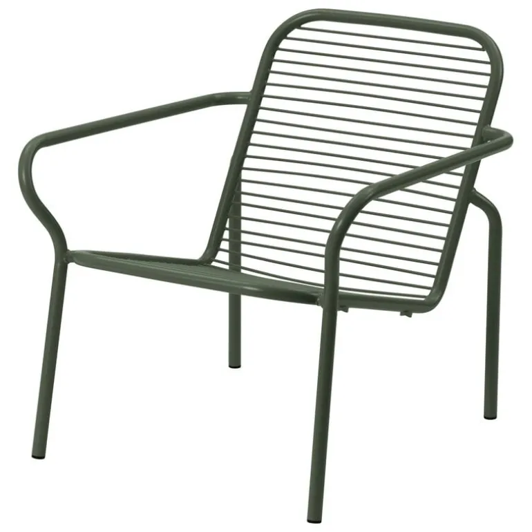 Vig-kollektionen, som har formgivits av Simon Legald, erbjuder ett brett spektrum av utomhusmöbler med allt från utestolar och utebänkar till trädgårdsbord – du kan enkelt förvandla din trädgård till en inbjudande och vacker grön oas. Genom sitt eleganta utförande och tåliga material är Vig som gjord för att användas länge: stålytan har pulverlackerats två gånger och är mycket motståndskraftig mot skiftande väderförhållanden, och stolen klarar därför att stå emot både gassande sol och ösregn.