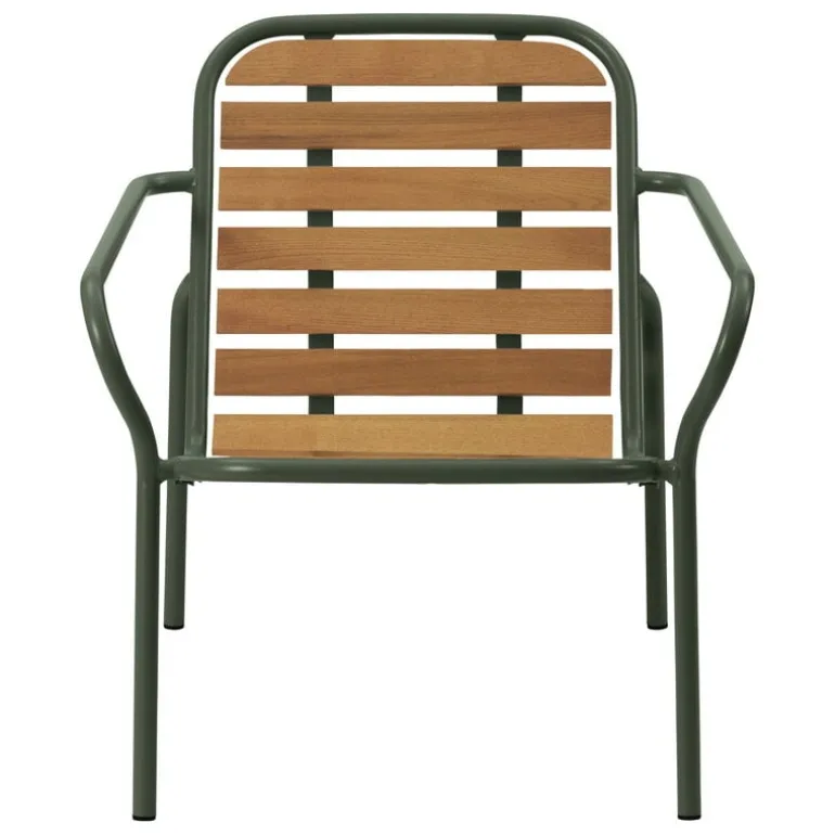 Vig-kollektionen, som har formgivits av Simon Legald, erbjuder ett brett spektrum av utomhusmöbler med allt från utestolar och utebänkar till trädgårdsbord – du kan enkelt förvandla din trädgård till en inbjudande och vacker grön oas. Genom sitt eleganta utförande och tåliga material är Vig som gjord för att användas länge: stålytan har pulverlackerats två gånger och är mycket motståndskraftig mot skiftande väderförhållanden, och stolen klarar därför att stå emot både gassande sol och ösregn. I den här Vig-vilstolen kombineras ytorna i stål med charmigt robiniaträ, som skapar en vacker och naturlig kontrast till metallramen.