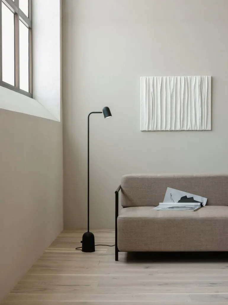 Golvlampan Buddy från Northern är en mångsidig och elegant kompanjon i alla utrymmen. Den kompakta designen gör lampan till ett utmärkt val även för mindre läshörnor eller sovrum. Den justerbara skärmen gör att du kan rikta ljuset exakt dit du vill – oavsett om det är mot skrivbordet, boken i ditt knä eller konstverket på väggen – medan dimmerfunktionen gör att du kan ställa in ljuset precis som du vill ha det. Buddy är designad av Mads Sætter-Lassen och tillverkad av stadig stål, och kombinerar funktionalitet med elegant enkelhet.