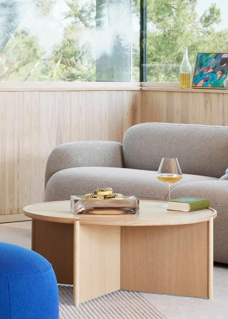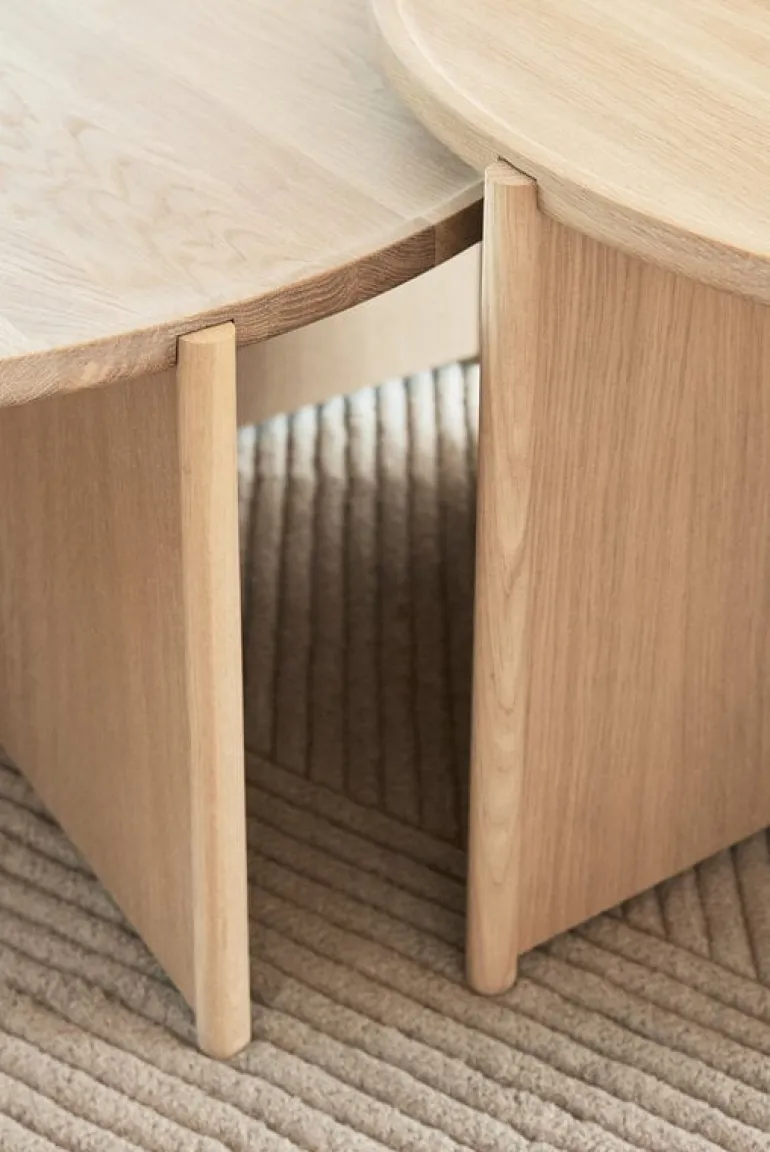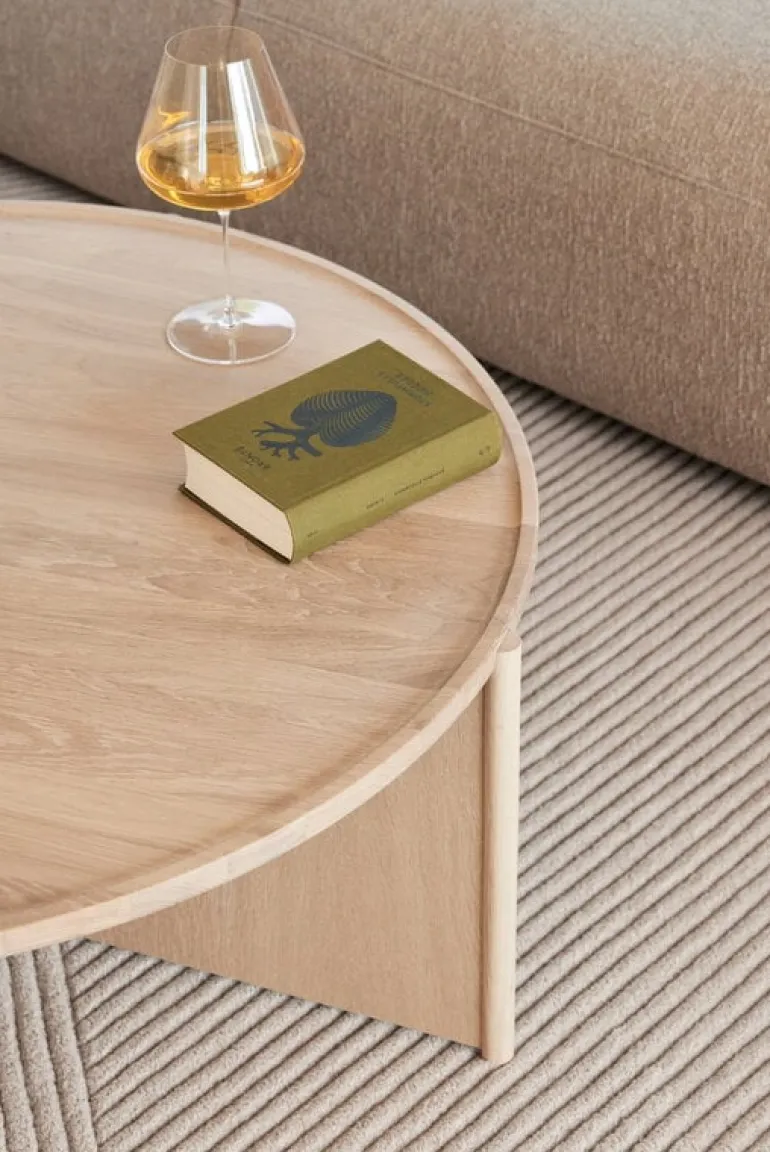 Northern Cling soffbord ger en elegant, modern touch till alla utrymmen. Bordet, som är designat av Anton Björsing, kombinerar en rund bordsskiva med en iögonfallande, geometrisk benstruktur, vilket ger det lätta bordet en överraskande stadighet utan att göra helhetsintrycket för tungt. Den ljusa färgen på ekträet med sitt distinkta ådringsmönster säkerställer denna balans. Cling soffbord är ett tidlöst vackert val för både vardagsrummet hemma och offentliga miljöer.
