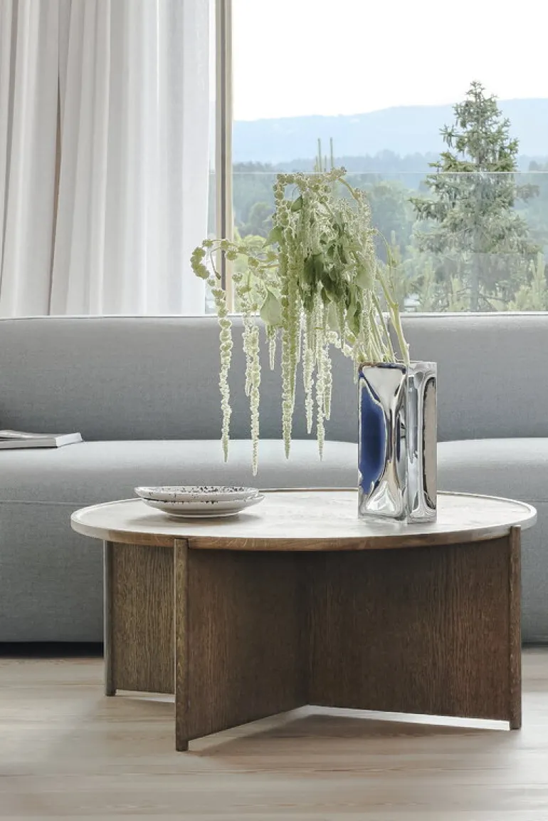 Northern Cling soffbord ger en elegant, modern touch till alla utrymmen. Bordet, som är designat av Anton Björsing, kombinerar en rund bordsskiva med en iögonfallande, geometrisk benstruktur, vilket ger det lätta bordet en överraskande stadighet utan att göra helhetsintrycket för tungt. Färgen på det rökfärgade eken med dess distinkta ådring säkerställer denna balans. Cling soffbord är ett tidlöst vackert val för både vardagsrummet hemma och offentliga utrymmen.