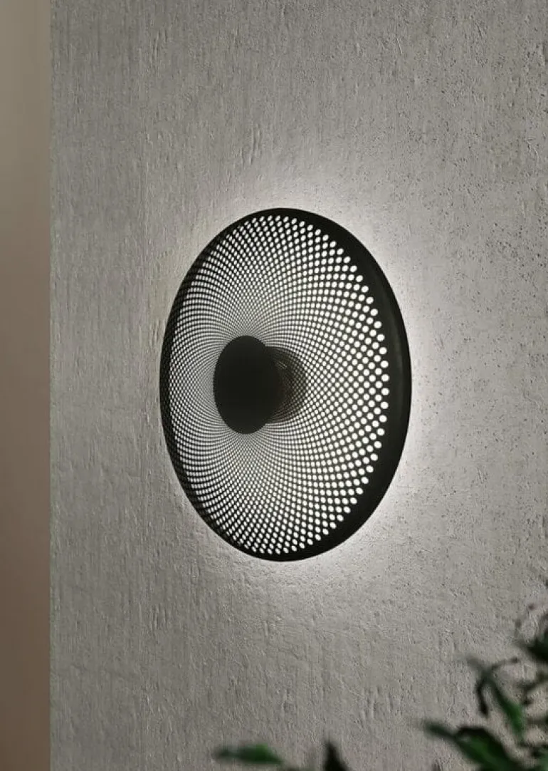 Northerns vägglampa Glint förtrollar med sitt mjuka, intima ljus. Den delikata armaturen består av en cirkulär metallskärm med en perforerad yta som filtrerar ett spel av ljus och skuggor över väggen. Glint-lampan passar i många rum: den smala och eleganta armaturen är en fröjd för ögat på egen hand på en sovrumsvägg eller i en rad av lampor i en hall eller trappa.
