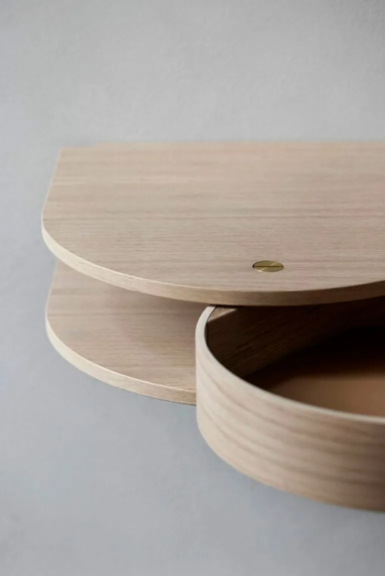 Den vägghängda lådan Valet från Northern ger extra förvaring till rum i alla storlekar på ett charmigt sätt. Den välvda lådan verkar sväva i luften – den väggmonterade hyllan kan hängas på olika höjder för att passa alla dina behov. Den vägghängda lådan Valet, som designats av Sami Kallio, kan användas som ett praktiskt sidobord eller nattduksbord.