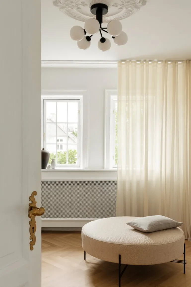 Taklampan Apiales 6 är designad av Sofie Refer för danska Nuura och är en bedårande, modern ljuskrona som är inspirerad av blomklasar. Taklampans stora, men slanka metallram har sex stycken runda, munblåsta glaskupor som mjukt och fint filtrerar ljuset.