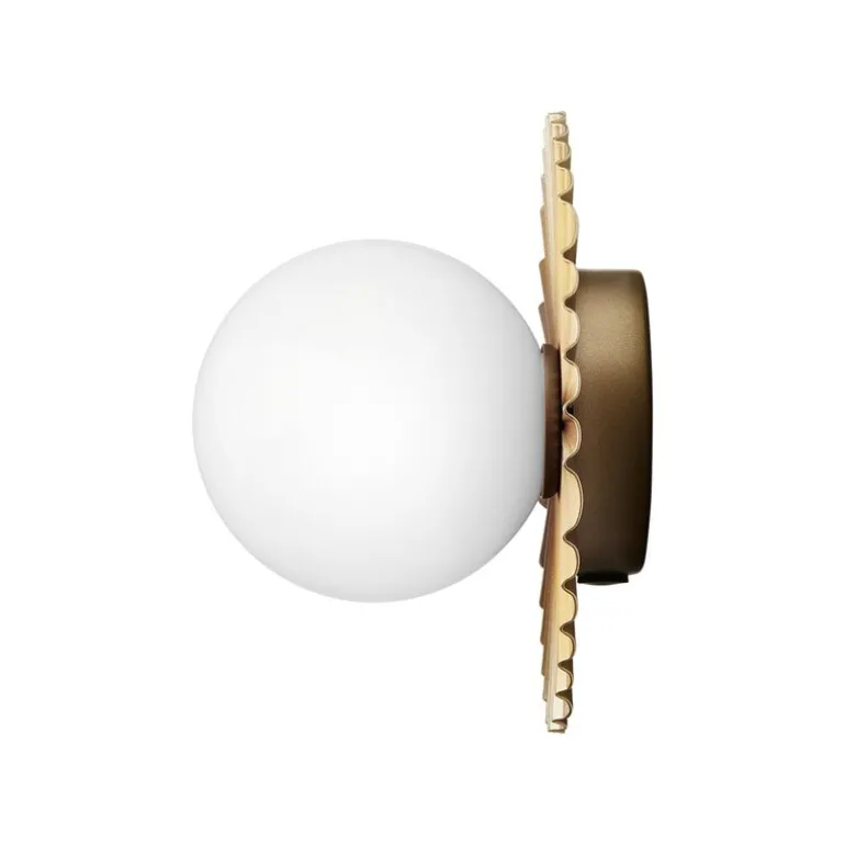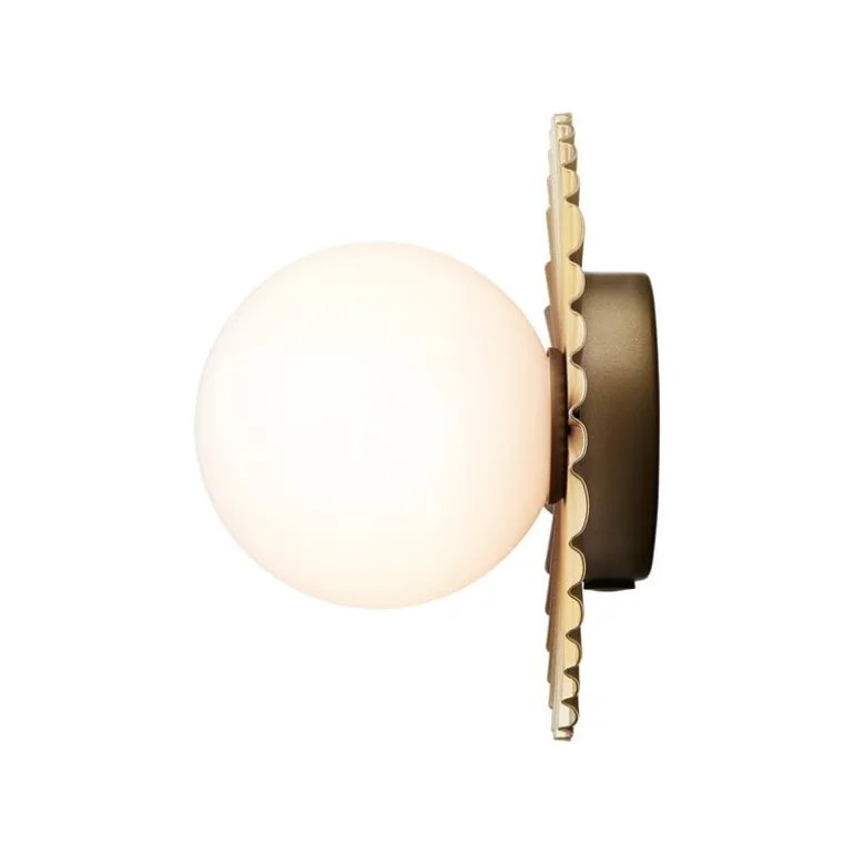 Nuuras lampa Liila Muuse är en härligt mångsidig ljuskälla som antingen kan monteras på väggen eller i taket. Liila-lamporna, som har skapats av den prisbelönta danska lampdesignern Sofie Refer, består av runda, munblåsta glasglober och robusta, men på samma gång graciösa metallstommar. På lampan Liila Muuse omges glasgloben av en underbart asymmetrisk och vågformad bakplatta med referenser till Köpenhamns nöjespark Tivoli, men också till de sirliga takutsmyckningar som finns i vissa historiska byggnader.
