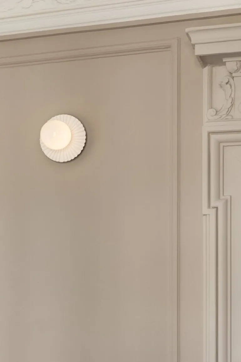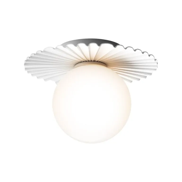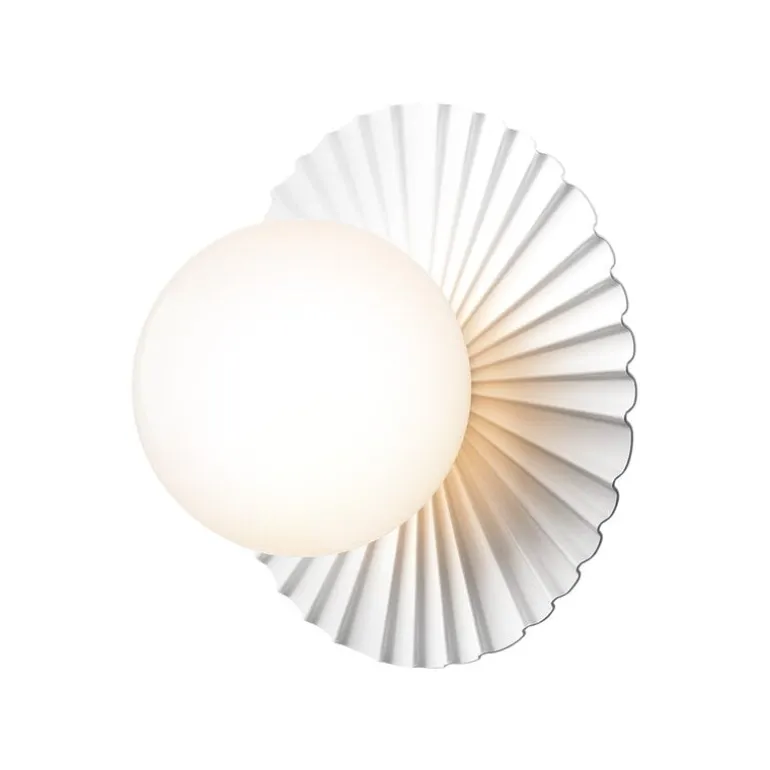 Nuuras lampa Liila Muuse är en härligt mångsidig ljuskälla som antingen kan monteras på väggen eller i taket. Liila-lamporna, som har skapats av den prisbelönta danska lampdesignern Sofie Refer, består av runda, munblåsta glasglober och robusta, men på samma gång graciösa metallstommar. På lampan Liila Muuse omges glasgloben av en underbart asymmetrisk och vågformad bakplatta med referenser till Köpenhamns nöjespark Tivoli, men också till de sirliga takutsmyckningar som finns i vissa historiska byggnader.