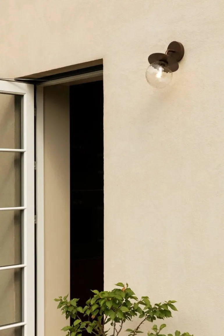 Nuuros vägglampa Liila Outdoor är speciellt framtagen för utemiljöer, som runt entréer och på husfasader. Lampan, som har skapats av den prisbelönta danska lampdesignern Sofie Refer, består av en rund, munblåst glasglob och en robust, men på samma gång graciös metallstomme. Den genomskinliga, texturerade skärmen skapar ett vackert, dekorativt mönster kring lampan.