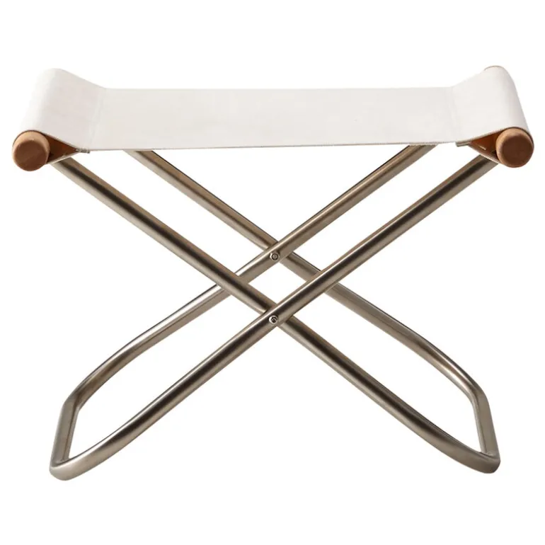 Fotpallen Nychair X är en japansk designklassiker som består av en hopfällbar metallram, en sits i bomullstyg och stöd i trä, vilket resulterar i en estetik som känns oerhört lätt och luftig. Den slitstarka segelduken formar sig efter användaren, och om det skulle behövas kan hela sitstyget rengöras eller bytas ut. Nychair X kan användas som fotpall till Nychair X-fåtöljerna eller som fristående portabel pall, medan den fällbara konstruktionen gör att den är väldigt enkel att förvara och transportera.