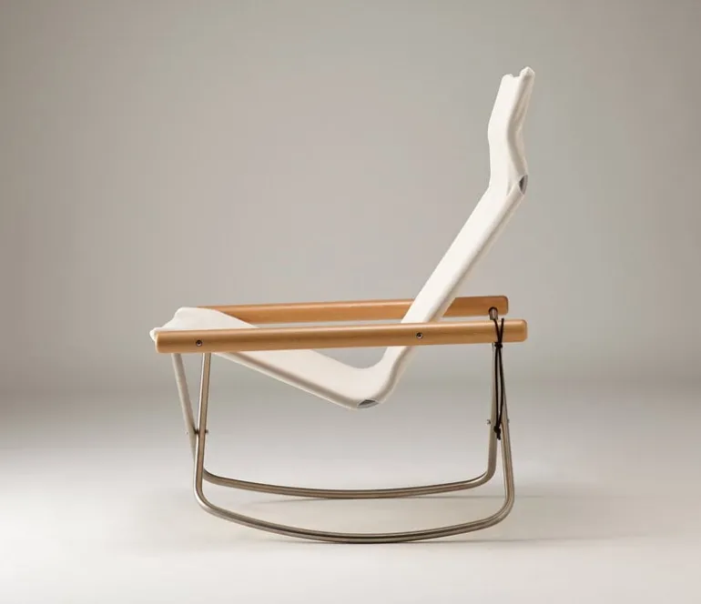 Gungstolen Nychair X är en japansk designklassiker som består av en hopfällbar metallram, en sits i bomullstyg och armstöd i trä, vilket resulterar i en estetik som känns oerhört lätt och luftig. Den minimalistiska gungstolen har en låg ram som enkelt kan fås i lätt gungning för avkoppling och vila, samt ett högt, svängt ryggstöd som ger extra stöd åt nacken. Den slitstarka segelduken formar sig efter användaren, och om det skulle behövas kan hela sitstyget rengöras eller bytas ut. Med sin eleganta och otroligt bekväma utformning passar gungstolen Nychair X lika bra till tv-tittande och avkoppling i vardagsrummet som till en välförtjänt paus på kontoret. Den fällbara konstruktionen gör den dessutom väldigt enkel att förvara och transportera.