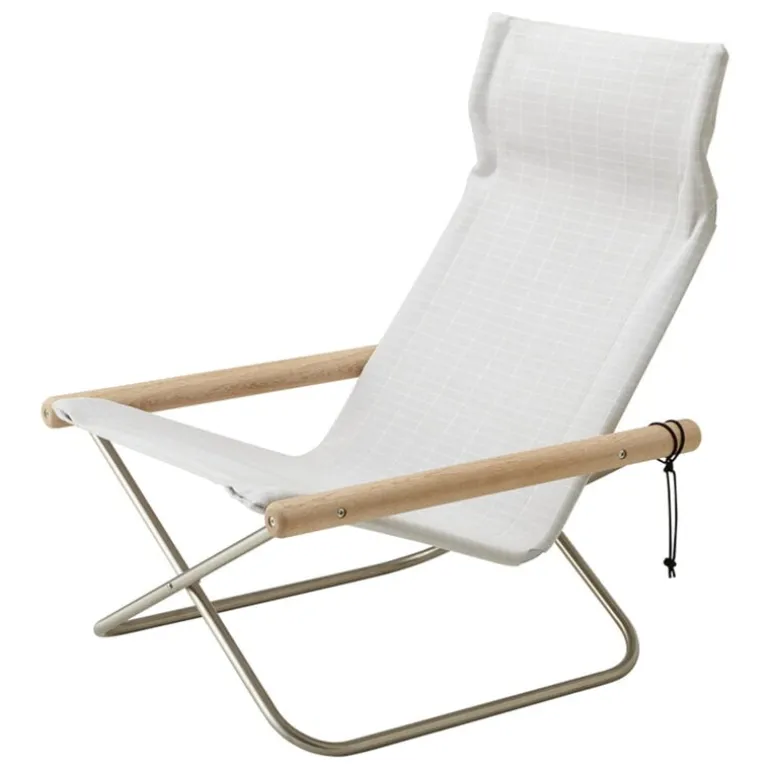 Fåtöljen Nychair X Shikiri är en japansk designklassiker som består av en hopfällbar metallram, en sits i bomullstyg och armstöd i trä, vilket resulterar i en estetik som känns oerhört lätt och luftig. Fåtöljen Nychair X Shikiri, som fått sitt namn och hämtat inspiration från japanska skiljeväggar och vikskärmar, är smyckad med ett geometriskt mönster som skapats av Rika Kawato. Den minimalistiska fåtöljen har en låg ram med lätt tillbakalutad ställning för avkoppling och vila, samt ett högt, svängt ryggstöd som ger extra stöd åt nacken. Den slitstarka segelduken formar sig efter användaren, och om det skulle behövas kan hela sitstyget rengöras eller bytas ut. Med sin eleganta och otroligt bekväma utformning passar fåtöljen Nychair X Shikiri lika bra till tv-tittande och avkoppling i vardagsrummet som till en välförtjänt paus på kontoret. Den fällbara konstruktionen gör den dessutom väldigt enkel att förvara och transportera.