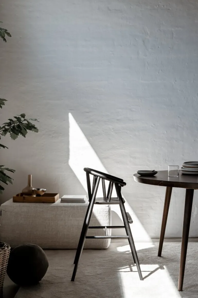 Den här barnstolen i massivt trä är formgiven av Nina Bruun. Den är byggd för att hålla länge – att lämnas vidare från ett syskon till ett annat, från en generation till nästa. Som en extra finess har stolen försetts med en uppsättning mässingsplattor, på vilka man kan gravera in namnen på barnen som har använt stolen eller andra små meddelanden. Stolens mjukt välvda linjer kompletterar perfekt den övergripande designestetiken för hela Oaklings produktfamilj.