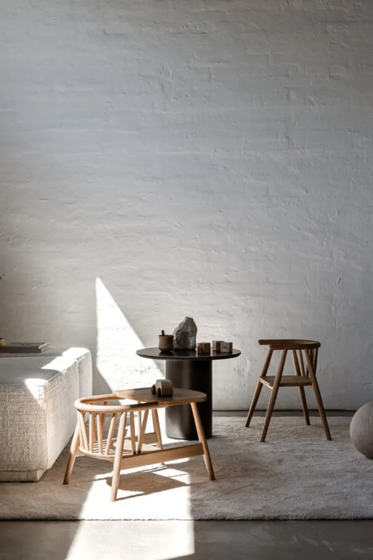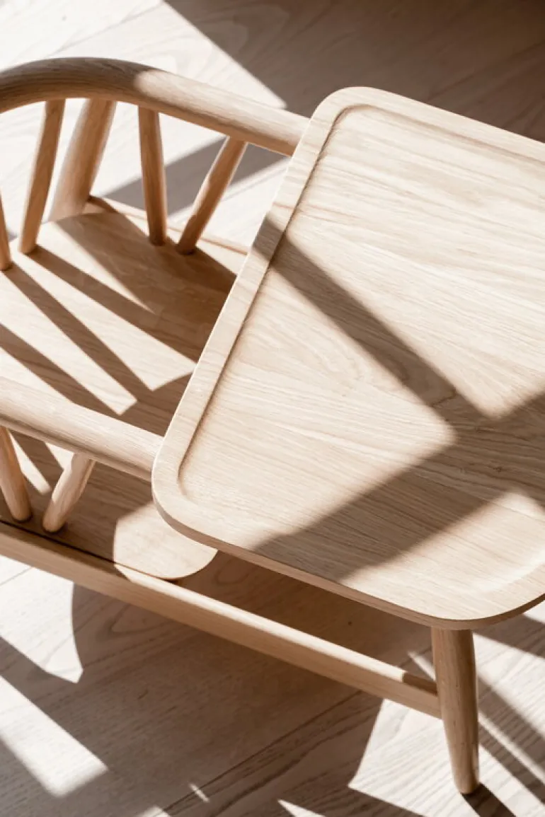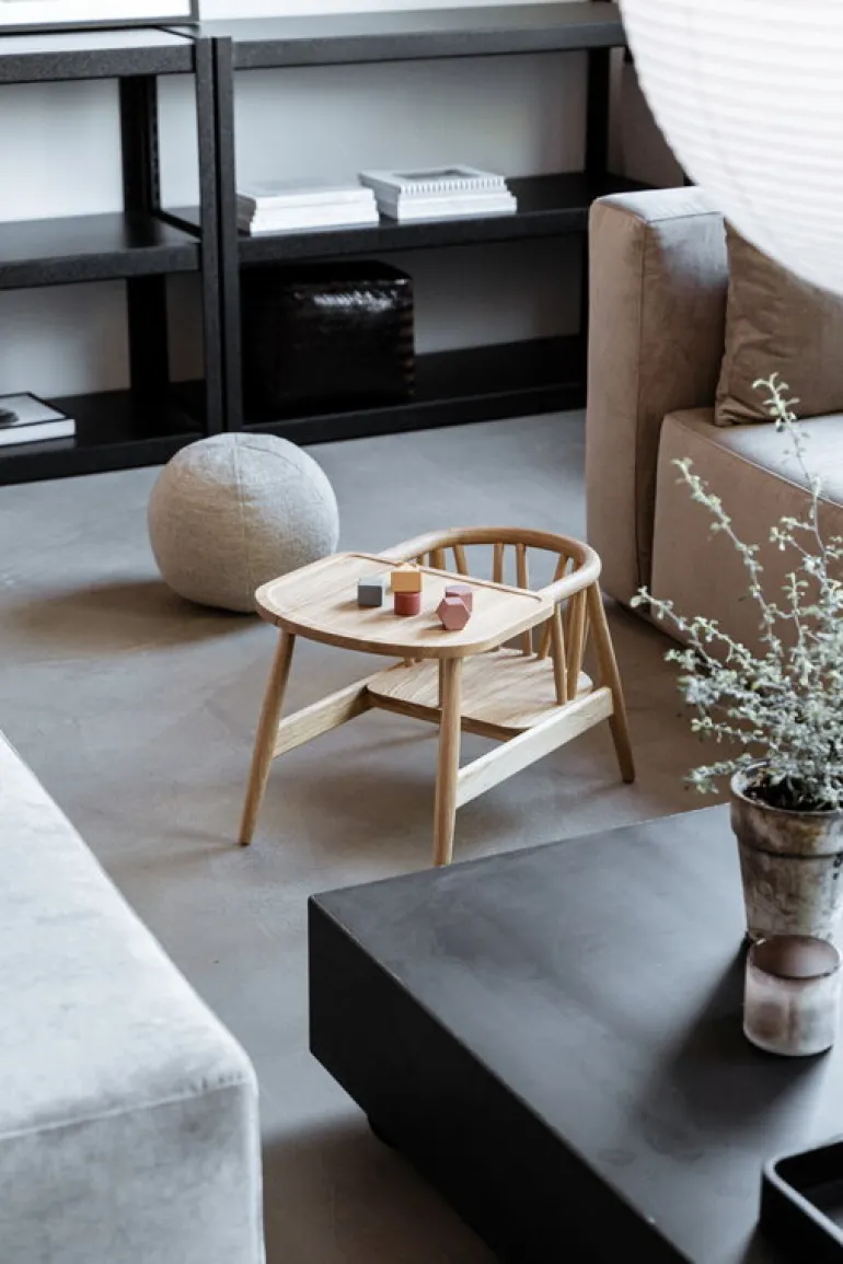 Den här barnstolen i massivt trä är formgiven av Nina Bruun. Den är byggd för att hålla länge – att lämnas vidare från ett syskon till ett annat, från en generation till nästa. Som en extra finess har stolen försetts med en uppsättning mässingsplattor, på vilka man kan gravera in namnen på barnen som har använt stolen eller andra små meddelanden. Stolens mjukt välvda linjer kompletterar perfekt den övergripande designestetiken för hela Oaklings produktfamilj.