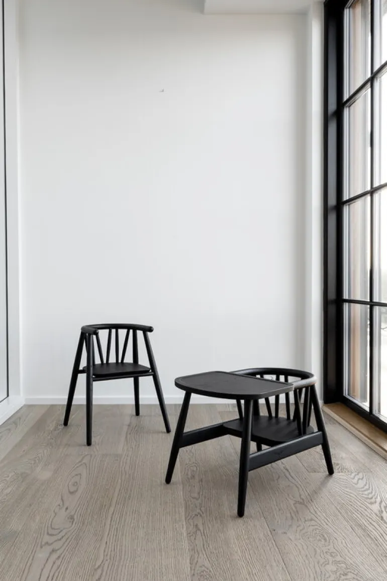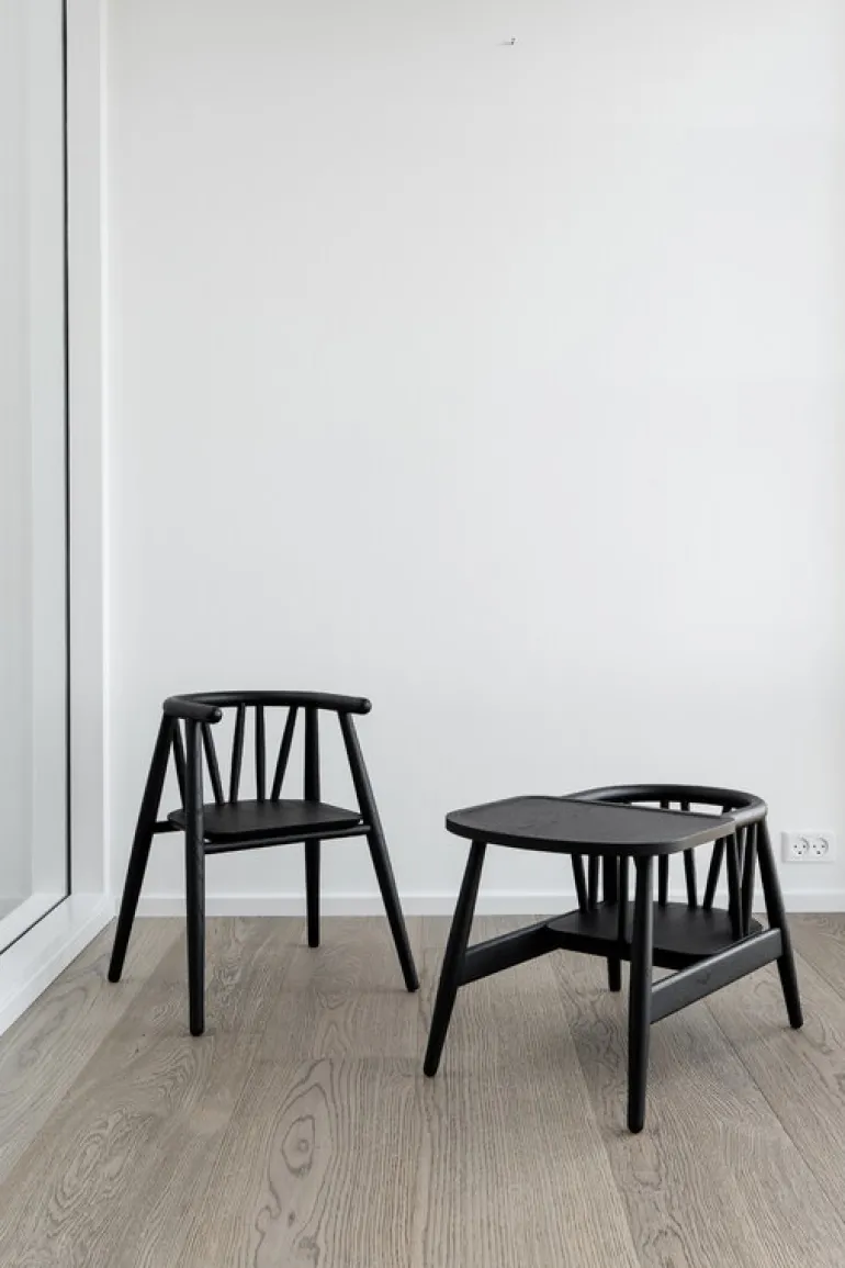 Den här barnstolen i massivt trä är formgiven av Nina Bruun. Den är byggd för att hålla länge – att lämnas vidare från ett syskon till ett annat, från en generation till nästa. Som en extra finess har stolen försetts med en uppsättning mässingsplattor, på vilka man kan gravera in namnen på barnen som har använt stolen eller andra små meddelanden. Stolens mjukt välvda linjer kompletterar perfekt den övergripande designestetiken för hela Oaklings produktfamilj.