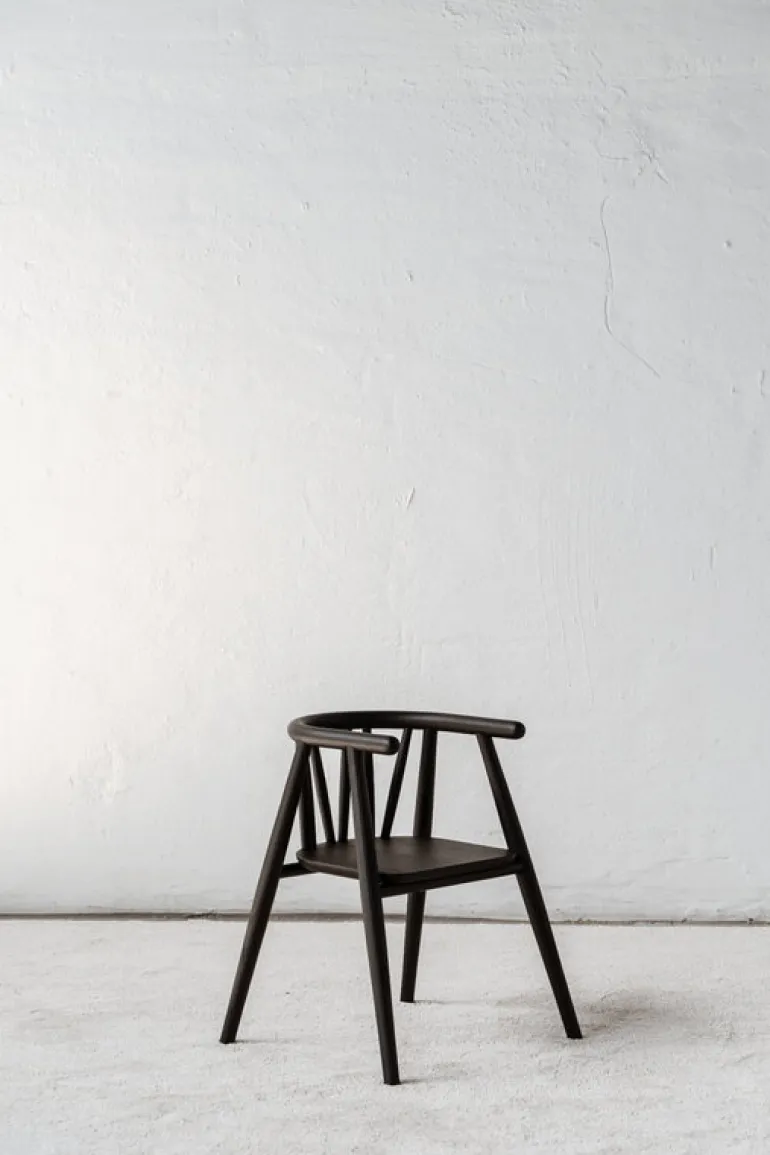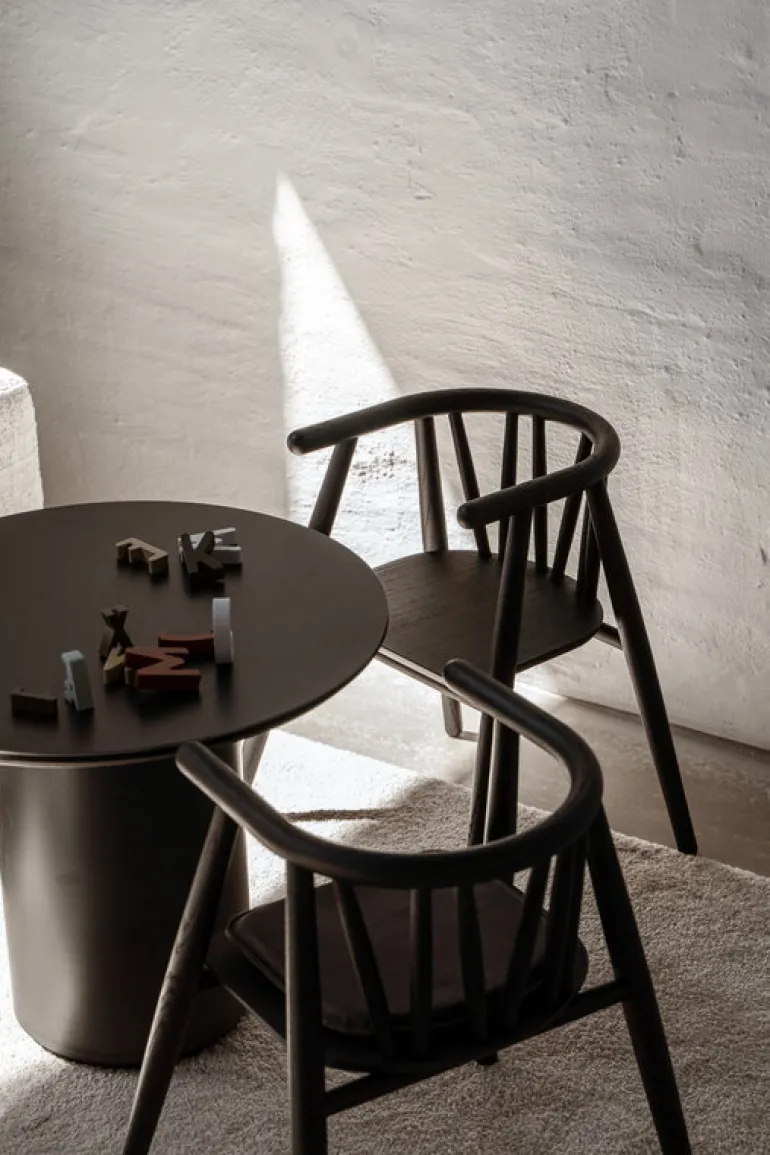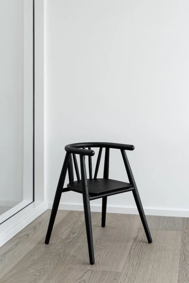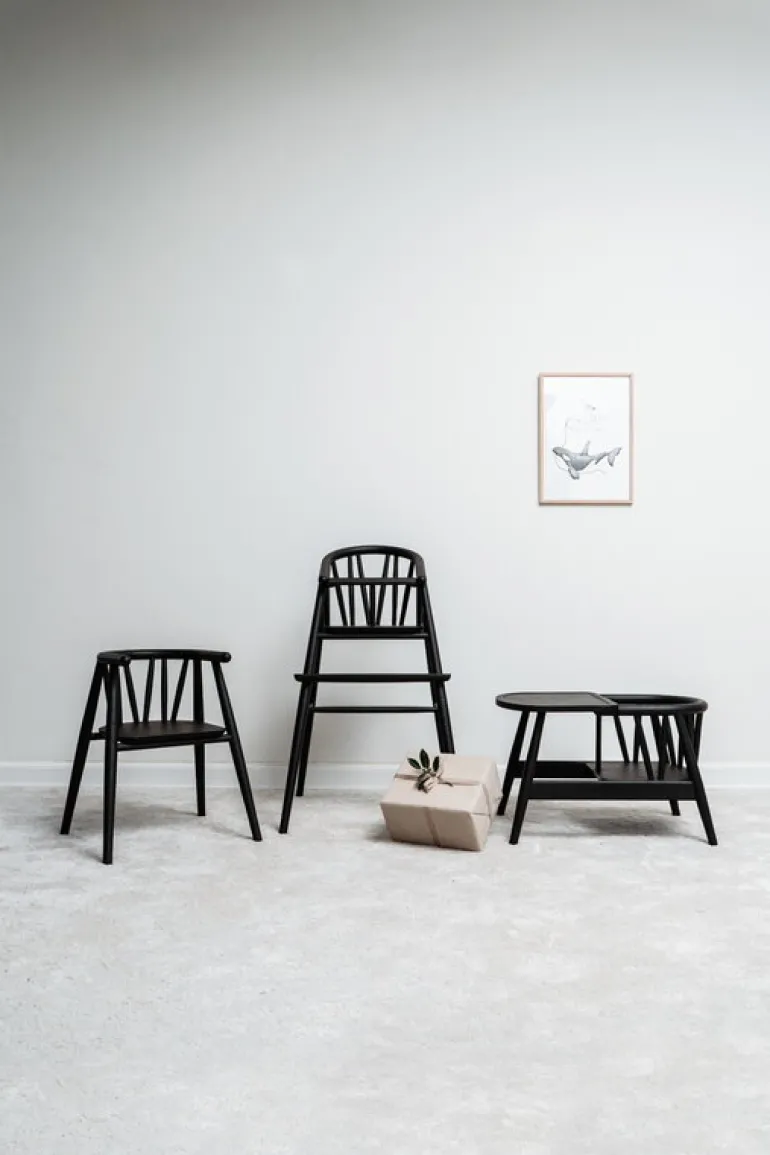 Den här barnstolen i massivt trä är formgiven av Nina Bruun. Den är byggd för att hålla länge – att lämnas vidare från ett syskon till ett annat, från en generation till nästa. Som en extra finess har stolen försetts med en uppsättning mässingsplattor, på vilka man kan gravera in namnen på barnen som har använt stolen eller andra små meddelanden. Stolens mjukt välvda linjer kompletterar perfekt den övergripande designestetiken för hela Oaklings produktfamilj.