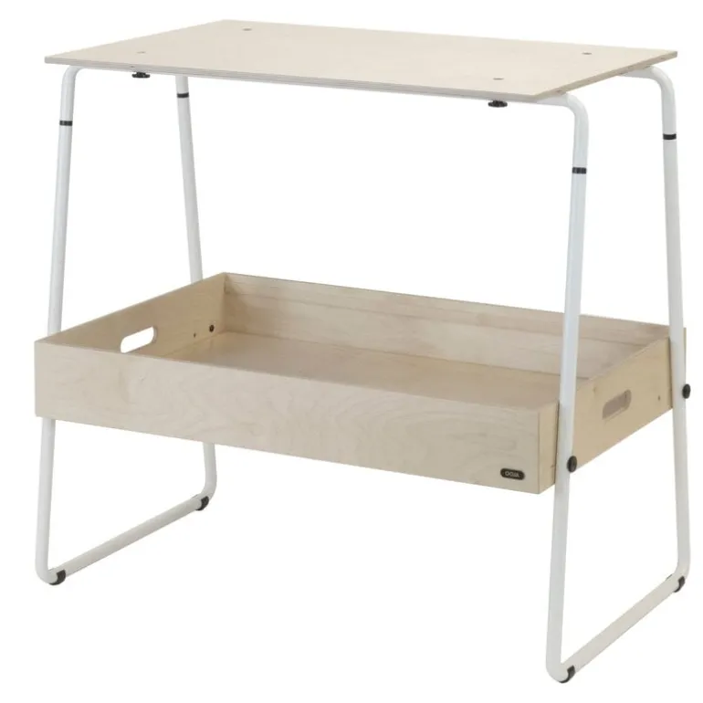Den minimalistiska disken är tillverkad av björkplywood och galvaniserat stål och får plats i små utrymmen för förvaring eller transport: metalldelarna inuti korgens trälåda fungerar som diskens två hjul. Disken är enkel att sätta ihop och ta isär helt utan verktyg och det tar endast ett par minuter. OOJA Displays disk är tillverkad i Finland.