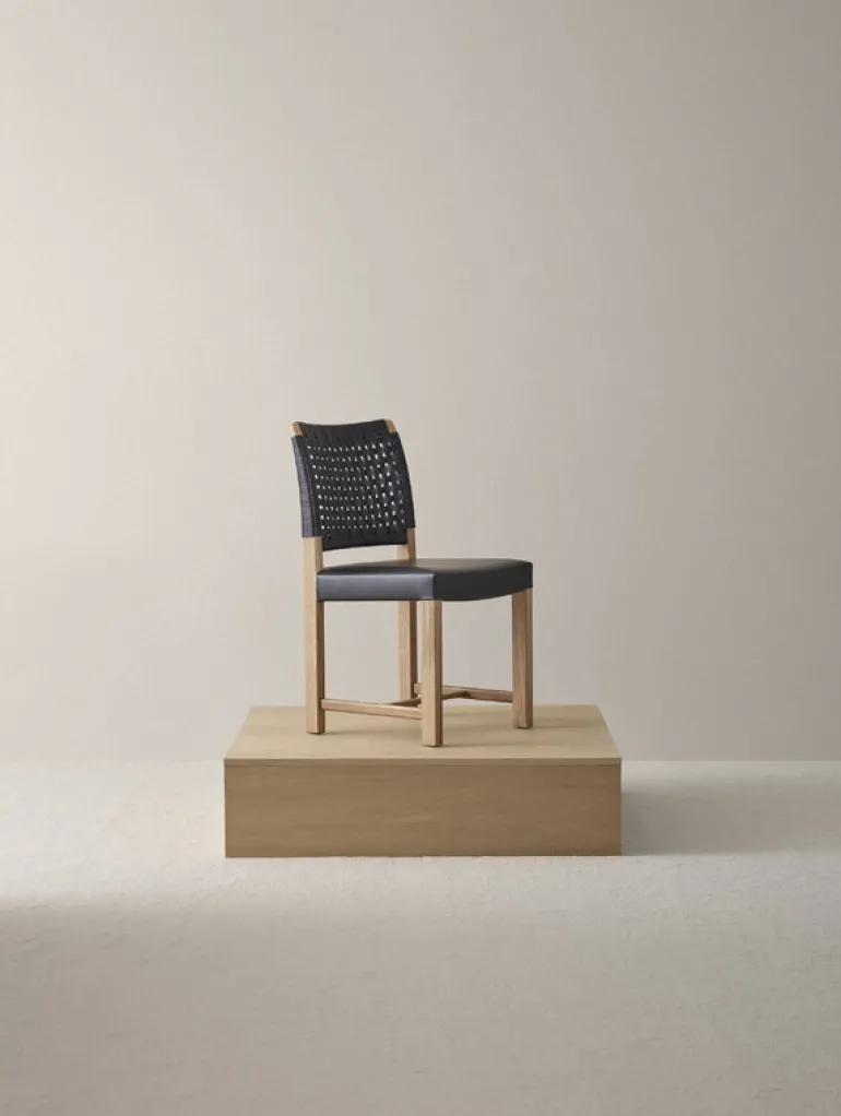Näyttely stolen från Ornäs har en robust ram av massivt trä med en stoppad, klädd sits och en dekorativ flätad rygg, vilket gör stolen lätt att känna igen och trevlig att sitta i. Näyttely stolen är ett sant mästerverk av skickligt hantverk – att fläta och klä stolen tar även en erfaren hantverkare en hel dag att slutföra.