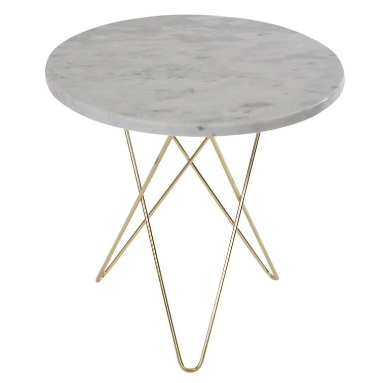 Bordet Tall Mini O är den lilla varianten av det bordet O från OX Denmarq. Designen är en intressant kombination av två olika material: den mjuka, böjda mässingsramen ger bordet ett lätt utseende, som fulländas av den kraftiga, livfulla bordsskivan i marmor. Utseendet blir ännu mer unikt med tiden, eftersom mässingens glans får en mörkare patina. Dennis Marquart är formgivaren bakom Tall Mini O, som passar utmärkt till en mindre soffa, som bord till en läshörna eller ett extrabord till andra rum i huset.