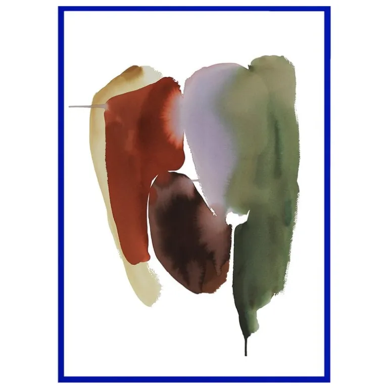 Paper Collectives Blemish 01-poster har en flerfärgad komposition av överlappande former och texturer. Postern är målad i vattenfärger av den danska konstnären Berit Mogensen Lopez och karaktäriseras av starka breda penseldrag och en flödande känsla av rörelse.