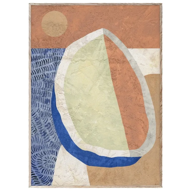 Paper Collectives affisch Calma 02 har en mjuk, rostad färgpalett som hämtar inspiration från konstnären Berenice Hernandez hemland, Mexiko. I hjärtat av den texturerade konstaffischen finns en skiva av exotisk frukt, vars lugnande kalla toner skapar en intressant kontrast mot den varma bakgrunden.