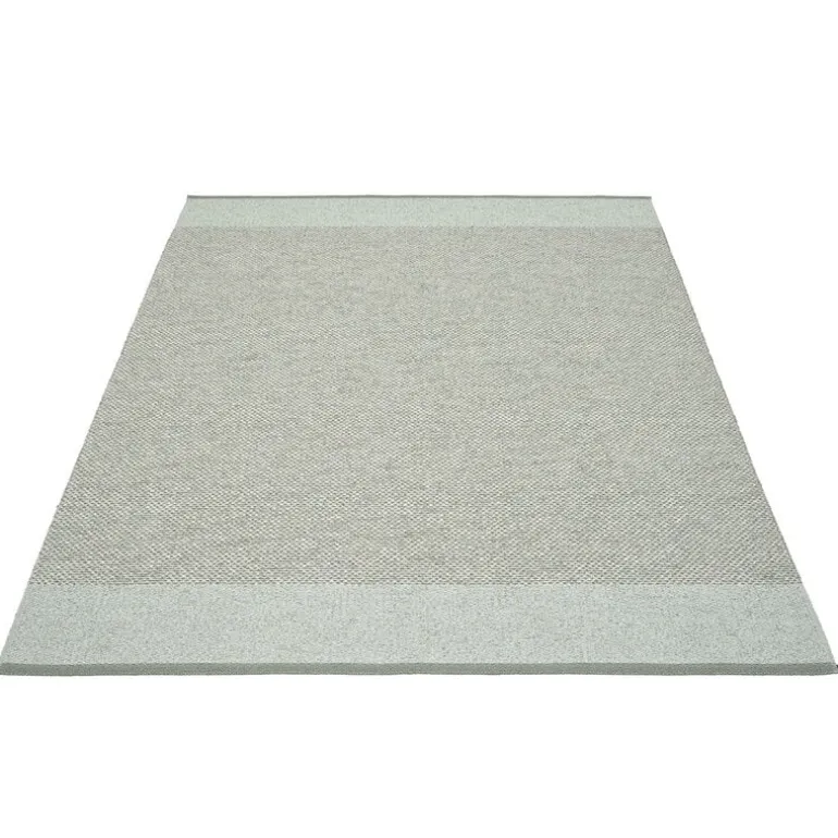 Pappelinas Edit-matta har ett simpelt och tidlöst mönster som vävts i tre färger. De blandas in i varandra och formar en levande textur med ett metalliskt sken. De dubbelvikta kanterna är fållade med en stark söm, och i det ena hörnet finns en gummietikett med Pappelina-logon insydd. Edit-mattan kan tvättas för hand eller i maskin.