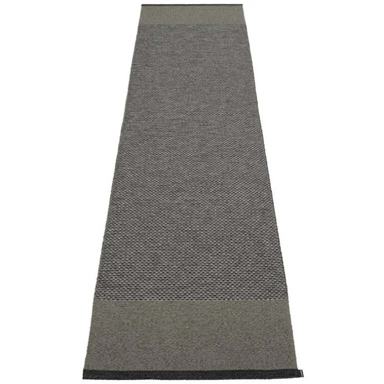 Plastmattan är tillverkad av ftalatfria PVC-band och är enkel att rengöra, vilket gör den till ett praktiskt val för alla utrymmen. Tack vare sin smala form kan mattan med lätthet användas som praktfull gångmatta i hallen, som köksmatta eller som utomhusmatta. Edit-mattan har vävts på traditionellt sätt i Dalarna.