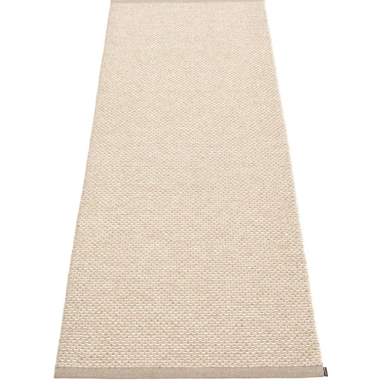 Effi-mattan designades för att fylla ett tomrum i Pappelinas kollektion: en simpel och elegant plastmatta utan krångel och dekorationer. Mattan designades av Lina Rickardsson och ser ut att vara i en och samma färg på avstånd men har faktiskt vävts i tre olika färger. De dubbelvikta kanterna är fållade med en kraftig söm.