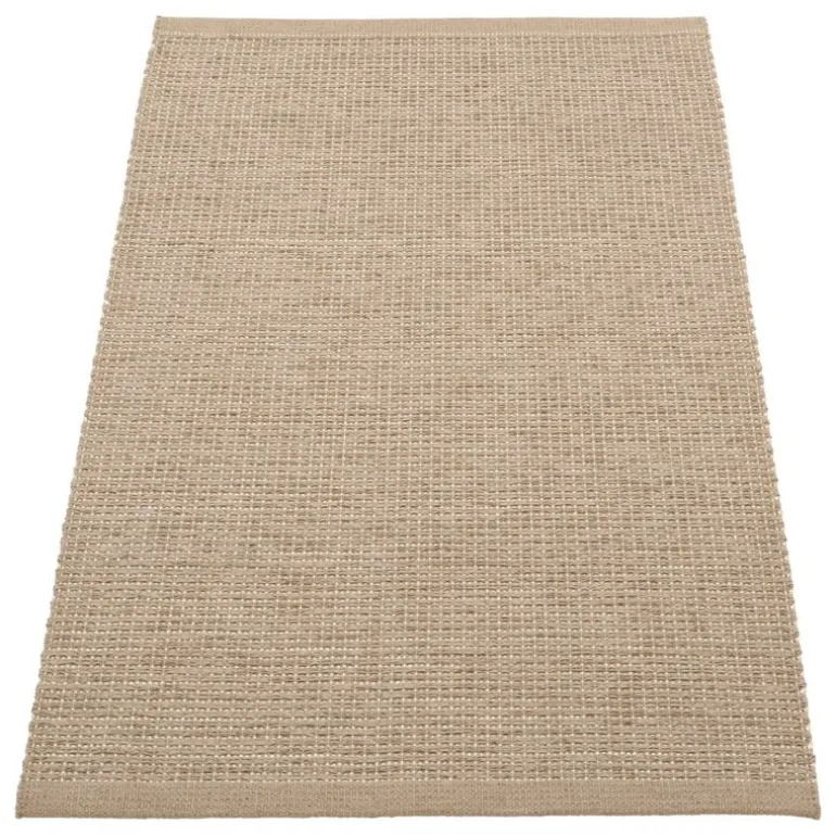 Pappelinas matta Emm ger en fräsch tolkning av varumärkets ikoniska plastmattor genom att blanda ftalatfria PVC-garner med en linnestråd. Resultatet är en dynamisk, subtilt metallisk matta som ger en elegant touch till alla utrymmen. Den tåliga och lättskötta Emm-mattan passar perfekt i kök, hall, entré och barnrum. Precis som alla andra mattor från Pappelina är Emm-mattan vävd i Sverige med traditionella metoder.