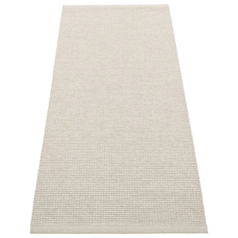 Pappelinas matta Emm ger en fräsch tolkning av varumärkets ikoniska plastmattor genom att blanda ftalatfria PVC-garner med en linvarp. Resultatet är en dynamisk, subtilt metallisk matta som ger en elegant touch till alla utrymmen. Den tåliga och lättskötta Emm-mattan passar perfekt i kök, hall, entré och barnrum. Precis som alla andra mattor från Pappelina vävs Emm-mattan i Sverige med traditionella metoder.