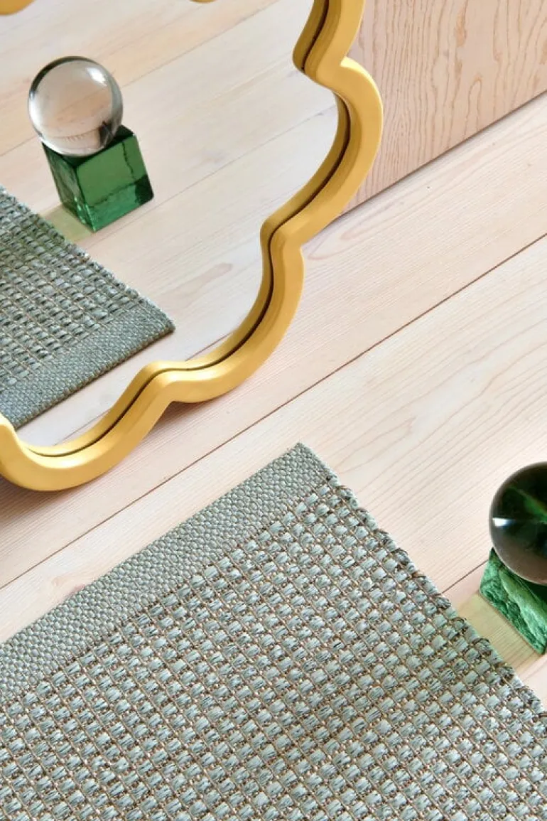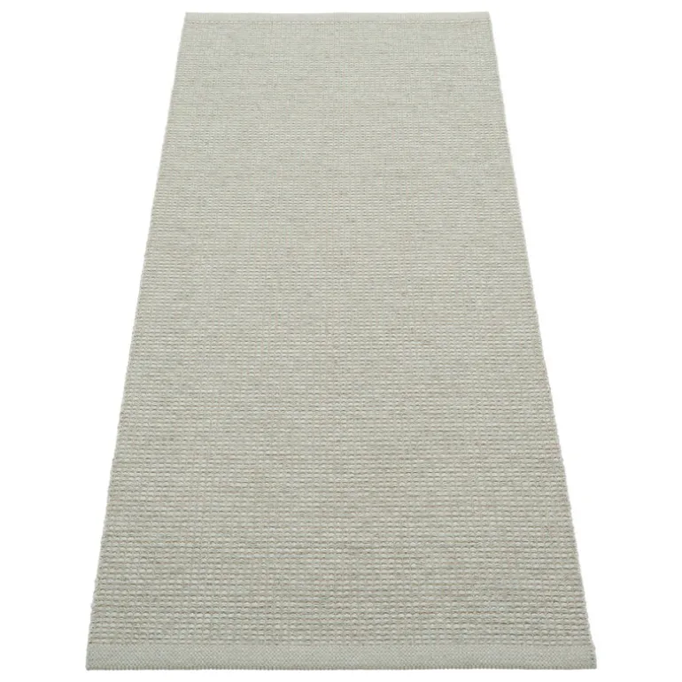 Pappelinas matta Emm ger en fräsch tolkning av varumärkets ikoniska plastmattor genom att blanda ftalatfria PVC-garner med en linnestråd. Resultatet är en dynamisk, subtilt metallisk matta som ger en elegant touch till alla utrymmen. Den tåliga och lättskötta Emm-mattan passar perfekt i kök, hall, entré och barnrum. Precis som alla andra mattor från Pappelina är Emm-mattan vävd i Sverige med traditionella metoder.