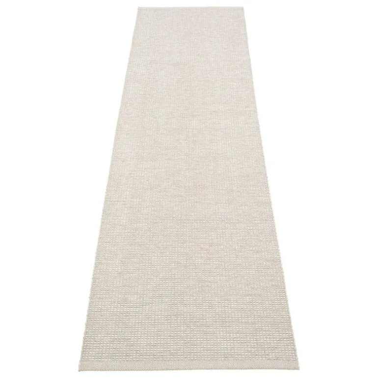 Pappelinas matta Emm ger en fräsch tolkning av varumärkets ikoniska plastmattor genom att blanda ftalatfria PVC-garner med en linnestråd. Resultatet är en dynamisk, subtilt metallisk matta som ger en elegant touch till alla utrymmen. Den tåliga och lättskötta Emm-mattan passar perfekt i kök, hall, entré och barnrum. Precis som alla andra mattor från Pappelina är Emm-mattan vävd i Sverige med traditionella metoder.