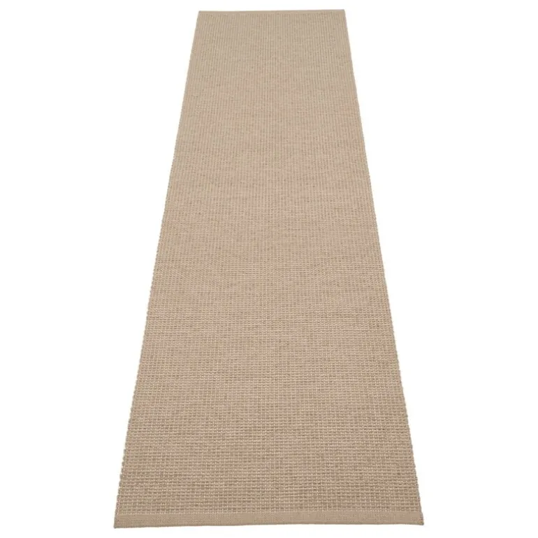 Pappelinas matta Emm ger en fräsch tolkning av varumärkets ikoniska plastmattor genom att blanda ftalatfria PVC-garner med en linnestråd. Resultatet är en dynamisk, subtilt metallisk matta som ger en elegant touch till alla utrymmen. Den tåliga och lättskötta Emm-mattan passar perfekt i kök, hall, entré och barnrum. Precis som alla andra mattor från Pappelina är Emm-mattan vävd i Sverige med traditionella metoder.
