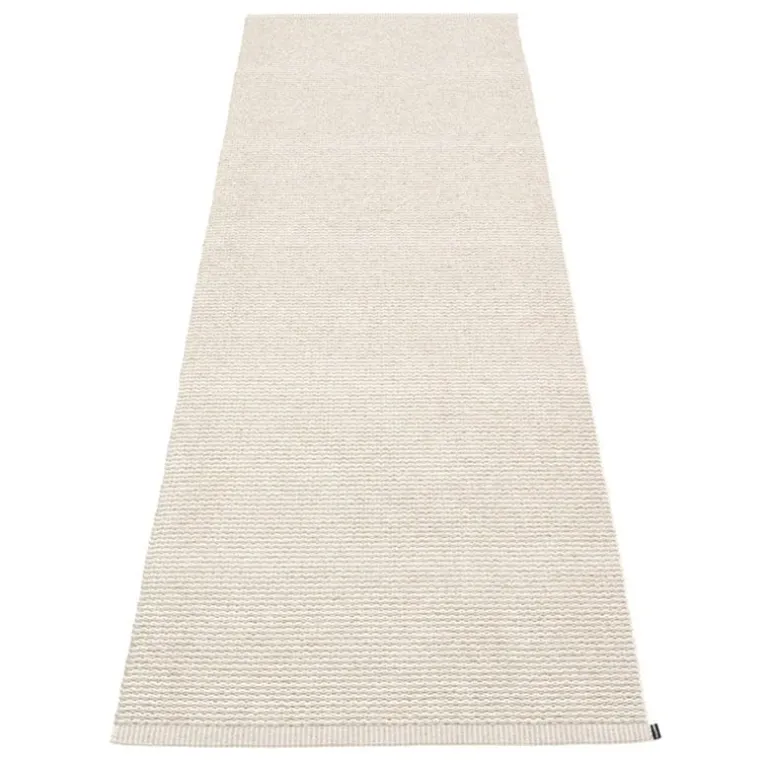Mono plastmattor från Pappelina är vävda på traditionellt sätt i vävstol i Dalarna, Sverige. Mattorna är tillverkade av ftalatfria PVC-band, är slitstarka och lättskötta, och de två eleganta färgtonerna går väl ihop med olika inredningar. Mattan kan tack vare sin smala form med lätthet användas som praktfull gångmatta i hallen, som köksmatta eller utomhusmatta. Kanterna på Mono-mattorna är dubbelvikta och har försetts med en påsydd gummietikett.