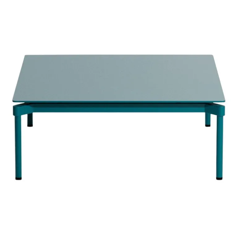 Petite Fritures soffbord Fromme har enkel, strömlinjeformad design och en tunn, rektangulär bordsskiva med integrerade stötdämpare som ger den en lätt flexibel känsla. Bordet är tillverkat i mattlackerad aluminium och är avsett för både utomhus- och inomhusbruk – det passar lika bra som sidobord i trädgården som soffbord inomhus.