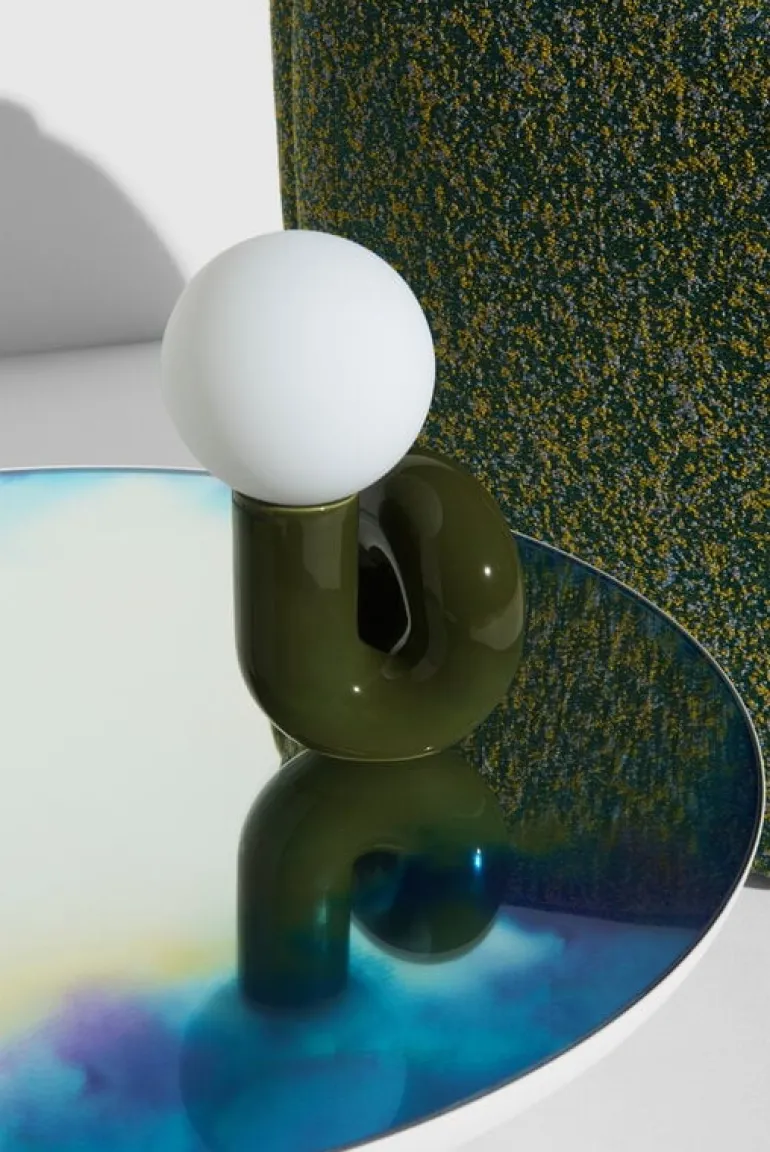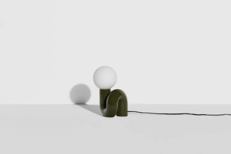 Petite Fritures bordslampa Neotenic har en lekfull design som kombinerar en bastant, böjd keramikfot med en nedtonad glaskupa. Lampan skapades av designduon Jumbo, som är baserad i USA, och inspirationen till fotens korkskruvsliknande form kommer från den italienska pastasorten cavatappi. Den komplexa formen tillverkas i flera steg av skickliga keramiker i Portugal. Den skulpterade lampan, som inspirerats av popkonst, fyller rummet med en glad känsla och ett mjukt ljus, vilket gör den lika lämplig som mittpunkt i ett minimalistiskt inrett rum som att användas tillsammans med starka färger och djärva former.