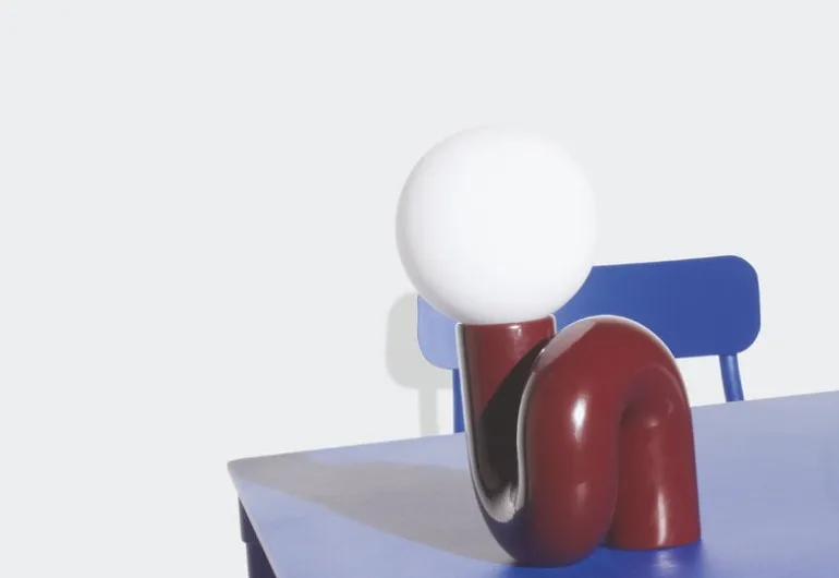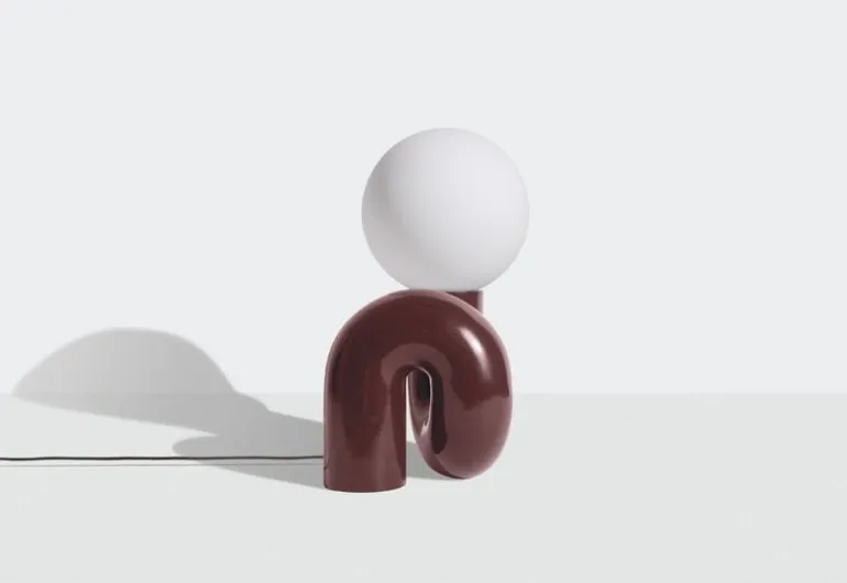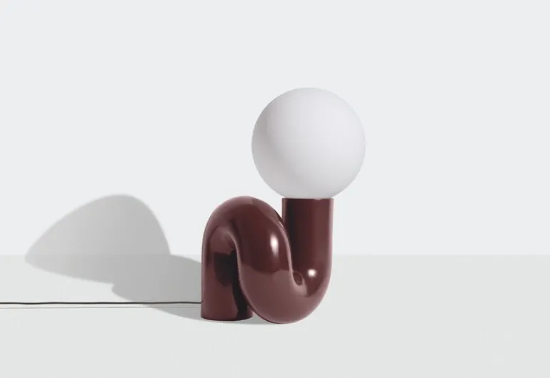 Petite Fritures bordslampa Neotenic har en lekfull design som kombinerar en bastant, böjd keramikfot med en nedtonad glaskupa. Lampan skapades av designduon Jumbo med bas i USA, och inspirationen till fotens korkskruvsliknande form kommer från den italienska pastasorten cavatappi. Den komplexa formen tillverkas i flera steg av skickliga keramiker i Portugal. Den skulpterade lampan, som inspirerats av popkonst, fyller rummet med en glad känsla och ett mjukt ljus, och passar lika bra som blickfång i ett minimalistiskt inrett rum som som komplement till starka färger och djärva former.