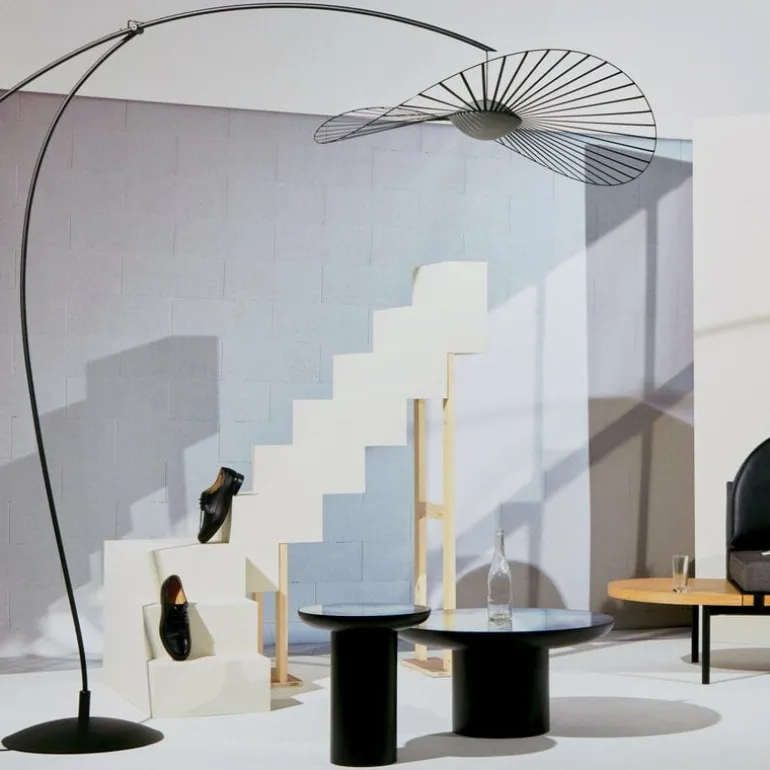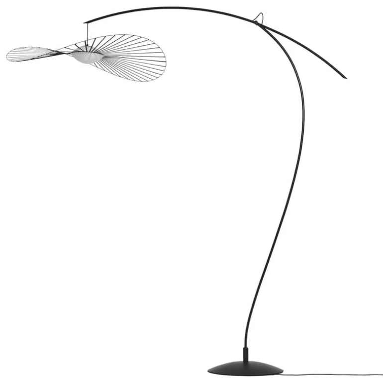 Golvlampan Vertigo Nova från Petite Friture fångar uppmärksamheten var den än är placerad. Den skulpturala lampan har inbyggd LED-teknologi som ger en mjuk belysning genom den sandblästrade glasgloben, i mitten av den slående fiberglasramen. Den luftiga men grafiska konstruktionen kastar fascinerande skuggmönster på väggarna, som rör sig när den fritt hängande skärmen vajar i det tunna bandet. Enligt Guisset är Vertigo Nova som en ”lätt och späd slöja som svävar mellan två världar”. Den kombinerar sömlöst banbrytande teknik med en enastående elegant design.