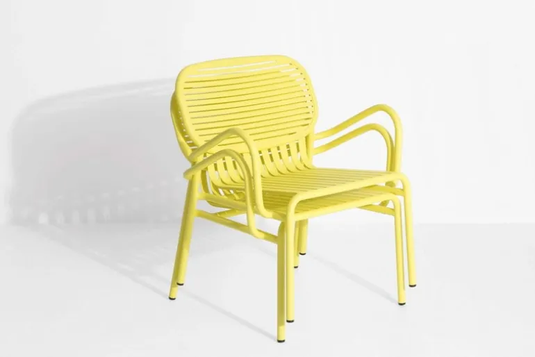 Designduon bakom Petite Fritures utemöbler Week-end heter BrichetZiegler, i kollektionen kombinerar de olika geometriska former med samtida, funktionell design. Aluminiumkonstruktionen gör möblerna lätta och slitstarka på samma gång. Den matta, epoxybehandlade ytan klarar av alla väderförhållanden. Kollektionen Week-end består av stolar, bänkar och bord i många färger och storlekar. Utomhusmöblerna fungerar lika bra i stora trädgårdar som på små balkonger. Tack vare den eleganta designen kan serien även användas inomhus.