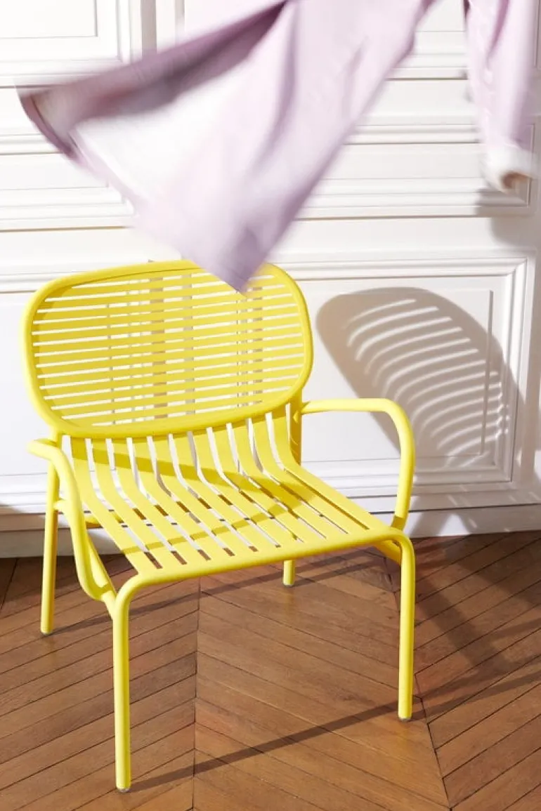 Week-end är en fåtölj som ingår i Petite Fritures kollektion med utemöbler i aluminium. Week-end fåtölj kännetecknas av ovala former med både horisontella och vertikala lameller på ryggstödet. Alla stolarna i serien Week-end är stapelbara.