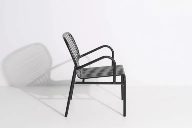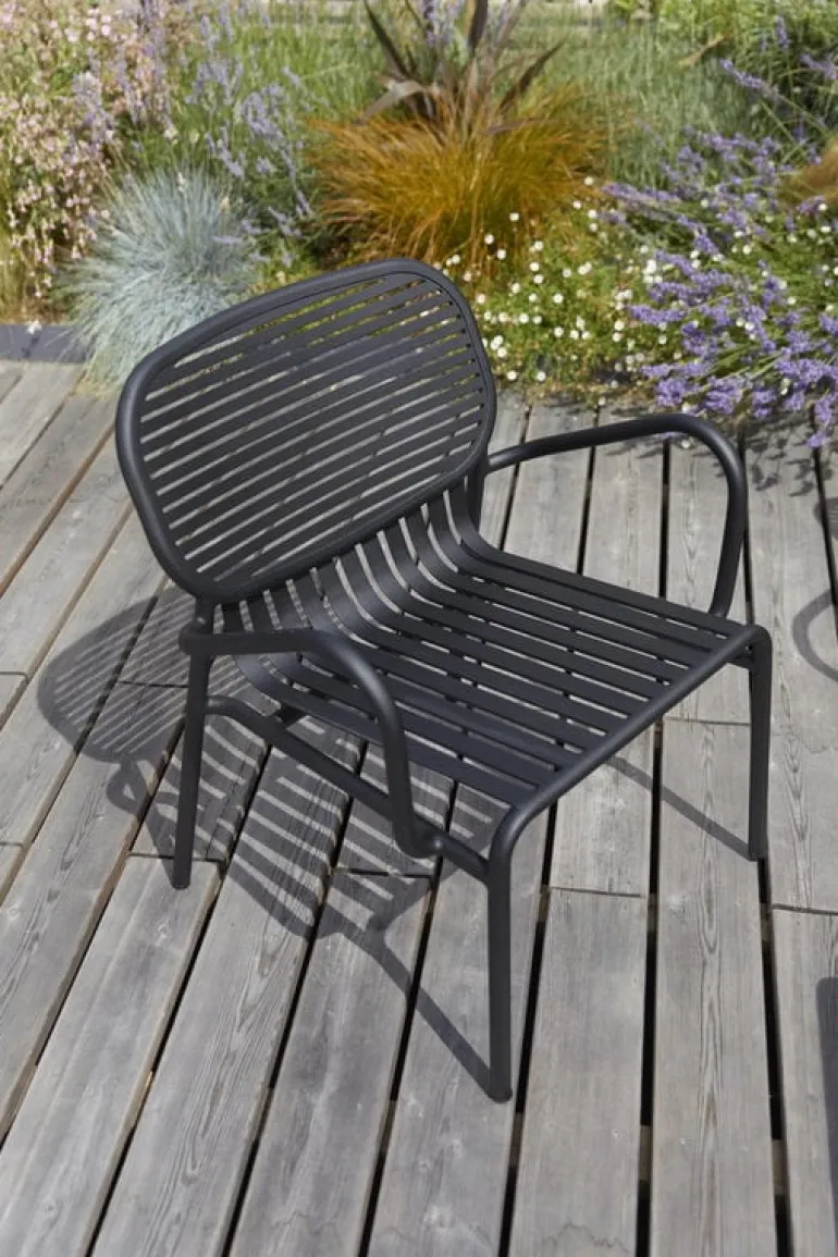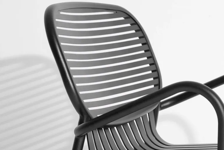 Week-end är en fåtölj som ingår i Petite Fritures kollektion med utemöbler i aluminium. Week-end fåtölj kännetecknas av ovala former med både horisontella och vertikala lameller på ryggstödet. Alla stolarna i serien Week-end är stapelbara.