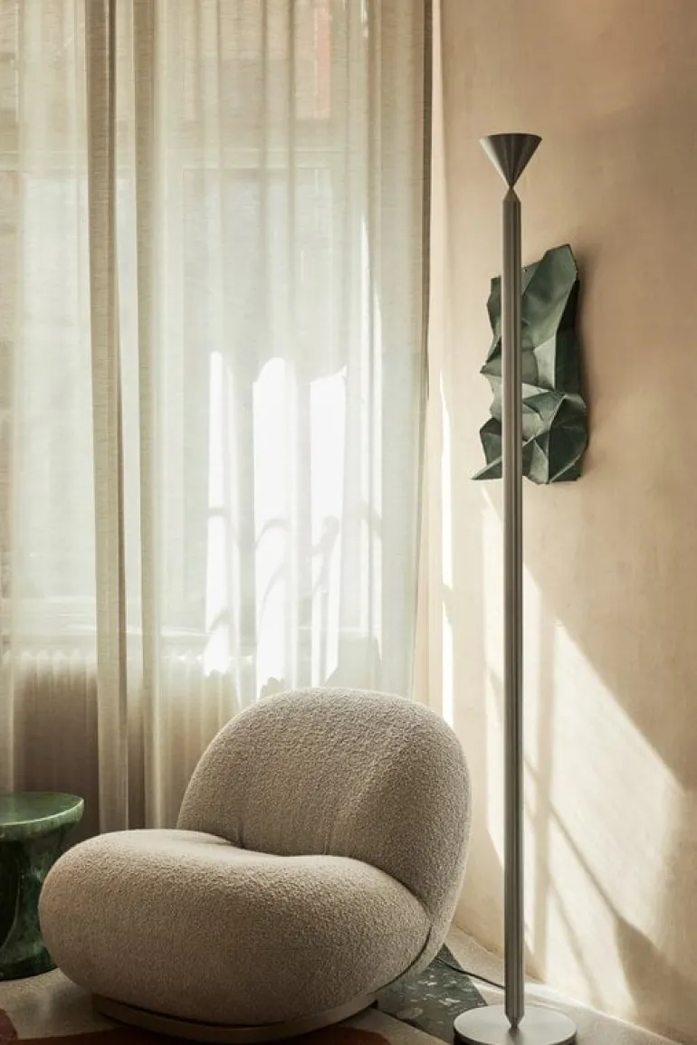 Golvlampan Apollo 180 från Pholc är en fascinerande kombination av dynamiska och statiska egenskaper. Den eleganta golvlampan designades av Broberg & Ridderstråle och består av koniska detaljer som fästs mot ett vertikalt aluminiumrör. Fokus ligger på materialvalet och färgerna samt det uppåtriktade ljuset. Tack vare sin slanka men distinkta form ser Apollo 180 fantastisk ut i olika typer av interiörer.