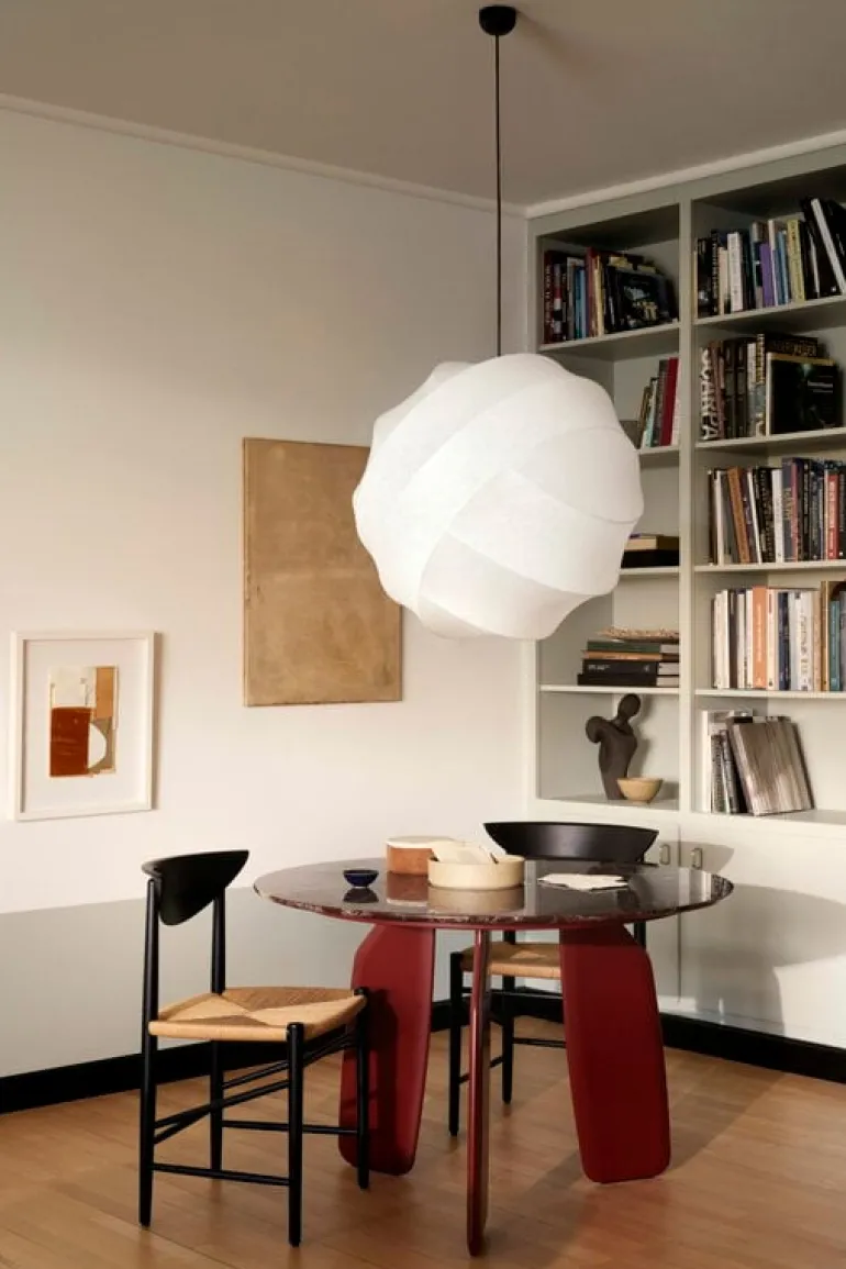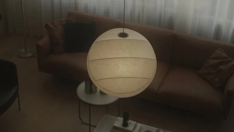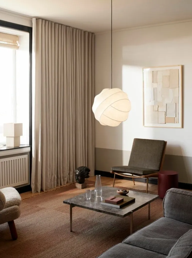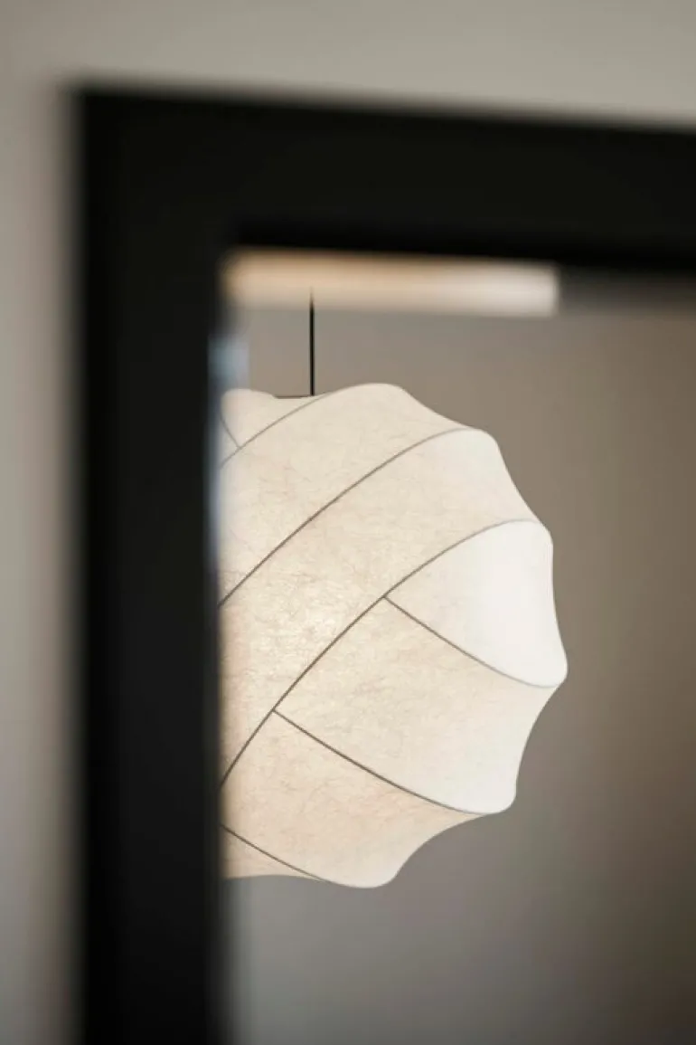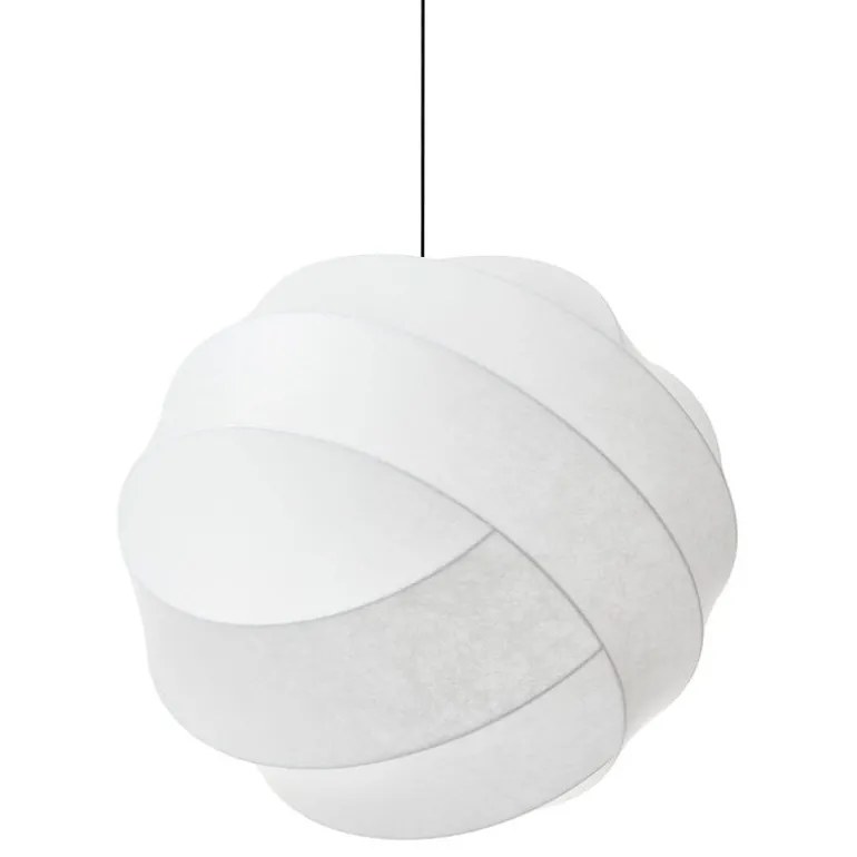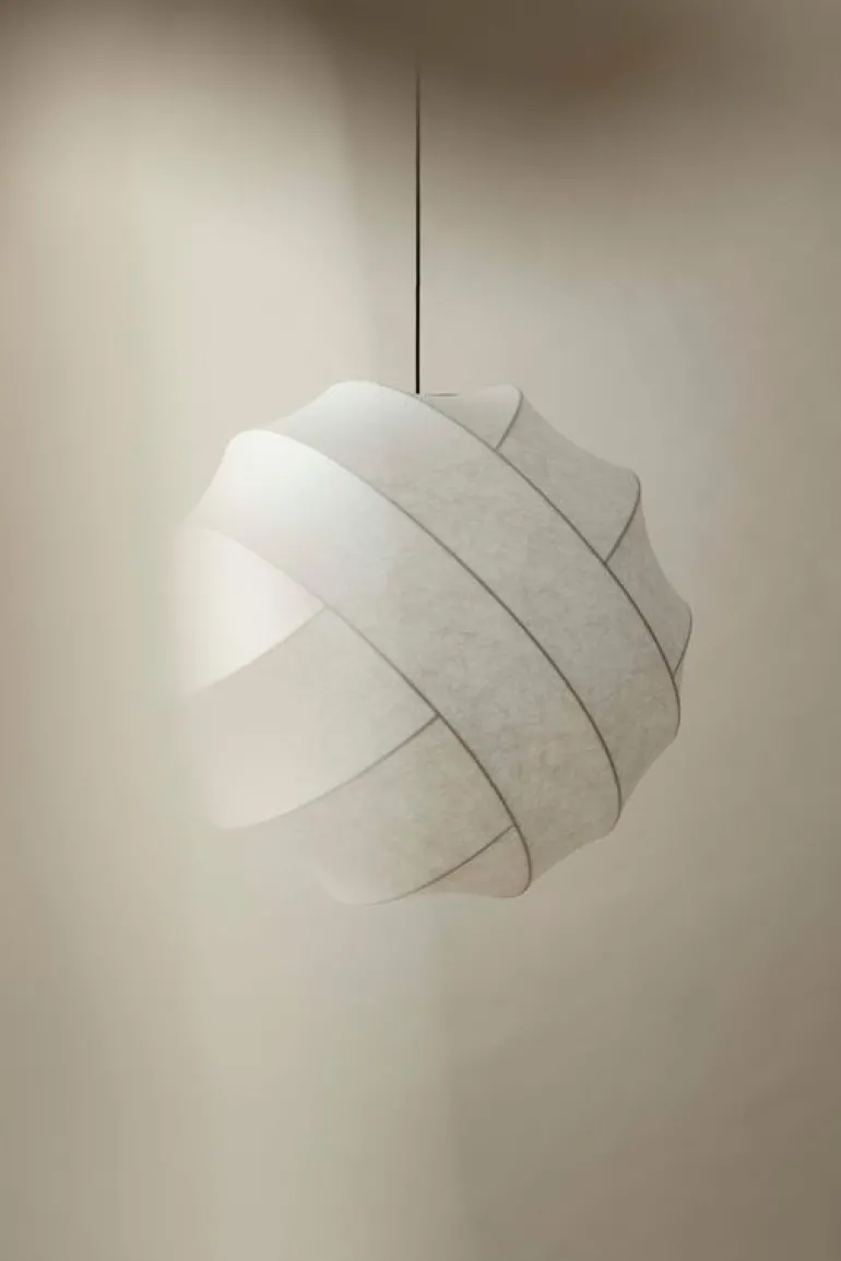 Pholcs Turner 65-pendel kombinerar en strikt form och minimalistiskt uttryck med ett härligt mjukt sken från insidan. Armaturen designades av Broberg & Ridderstråle och skapas genom att spreja ett tunt lager kokongharts runt en geometrisk metallram, vilket till slut formar lampans tunna, genomskinliga form som påminner om klassiska rispapperslampor. Kokongmaterialet sprider ut ljuset lätt, vilket skapar ett mjukt och atmosfäriskt sken i rummet.