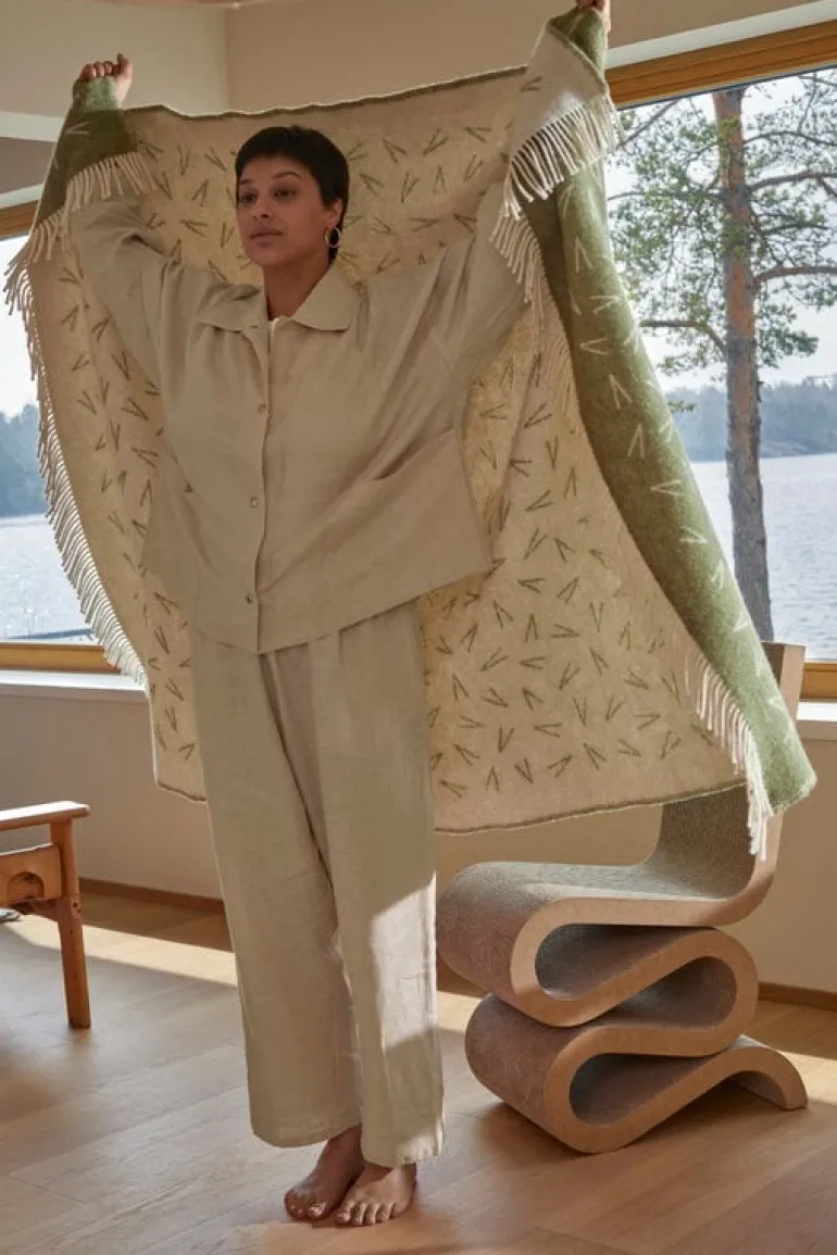 Filten Pine Needles från Pidät är dekorerad med ett geometriskt mönster som påminner om tallbarr – och ja, formgivarparet Mika och Julie Tolvanen inspirerades faktiskt av barr som fallit ner bredvid en skogsstig i den vita vintersnön eller i vattnet i en sjö. Filten Pine Needles är tillverkad av Oeko-Tex-certifierad ull och med fransar i bägge ändar som ytterligare understryker filtens harmoniska stil. Den praktiska filten har en given plats på många ställen: du kan använda den som ett elegant överkast och drapera den över din säng, ha den som mysig filt till siestan i vardagsrumssoffan, ta med den till parken och använda den som picknickfilt eller svepa den över axlarna kyliga sommarkvällar.