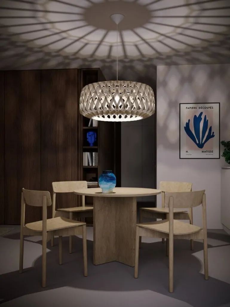 Taklampan Pilke Signature 80 från Pilke Lights ger ett atmosfäriskt sken till alla rum. Som du kanske har gissat utifrån lampans namn, har Pilke 80 taklampa en diameter på 80 cm, vilket gör den idealisk för större rum; dess volyminösa men luftiga design ser särskilt tilltalande ut när den hängs över ett soffbord eller ett matbord.